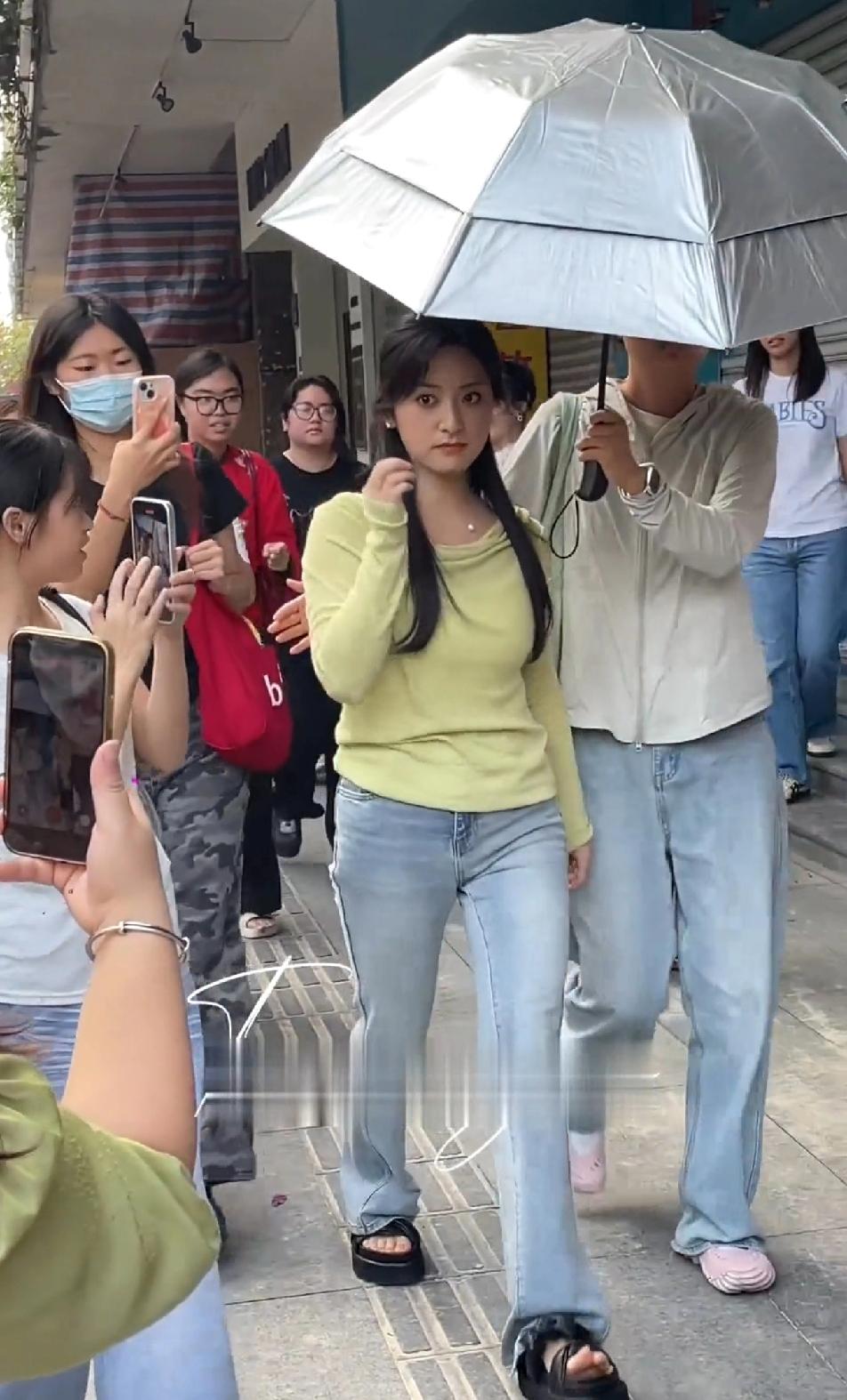 沈月这穿搭是认真的吗?这牛仔裤配黑色厚底拖鞋的穿搭哪里有半点女明星的影子?周围围观的小姐姐都有很多的比她亮眼的吧,沈月真的不只是个子小的问题,她的身材比例,仪态,衣品好像都不太行,鞠婧祎个子也不高,但是鞠婧祎其他没什么毛病,也很有明星范儿。造型师上心点,给沈月整点像样的穿搭吧!