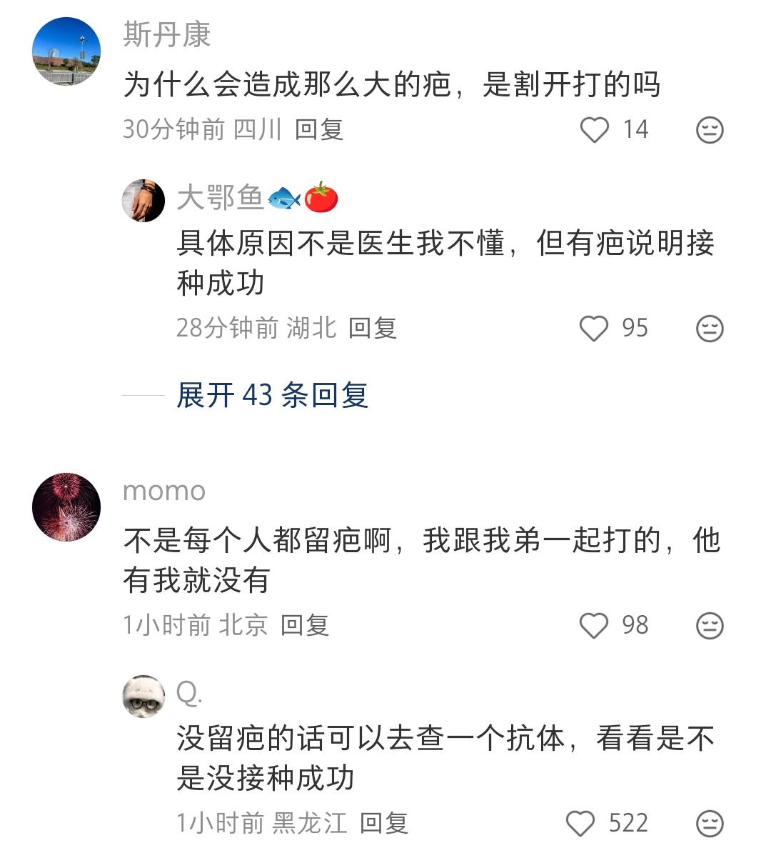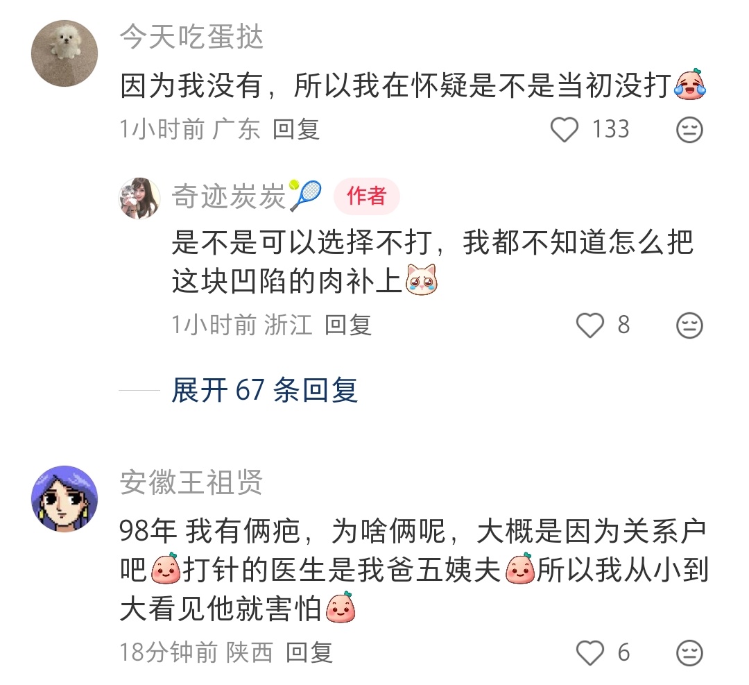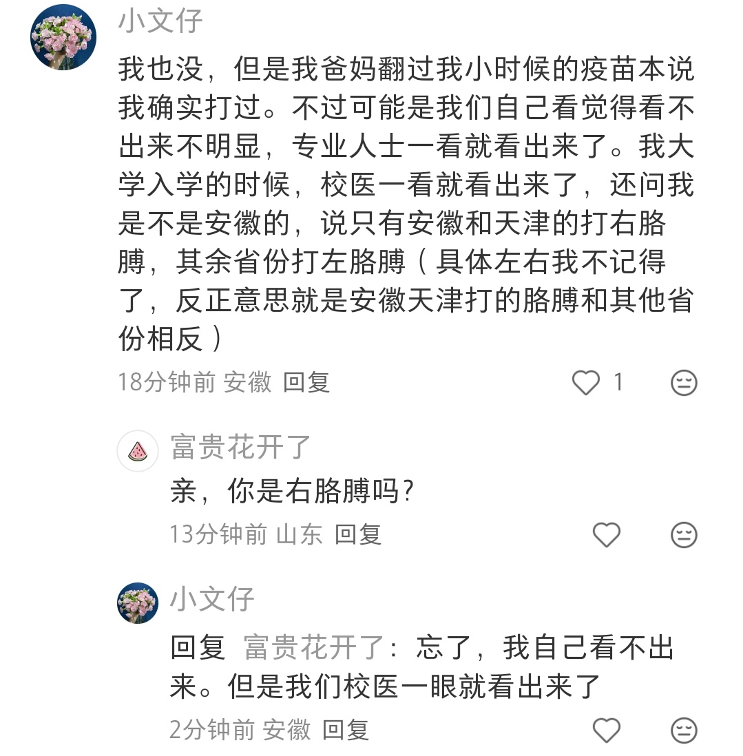 我也没有这个疤,我怀疑我小时候没打过卡介苗