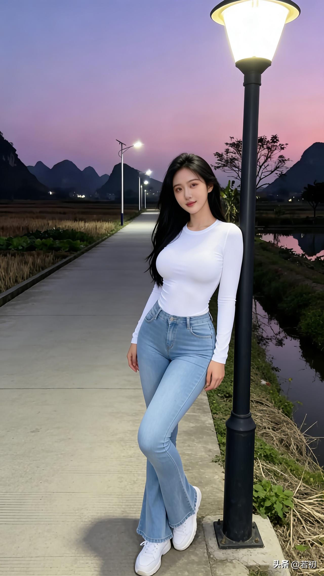 夏日田野漫步,牛仔裤与白T恤的清新搭配,轻松自在。🌾👗👟