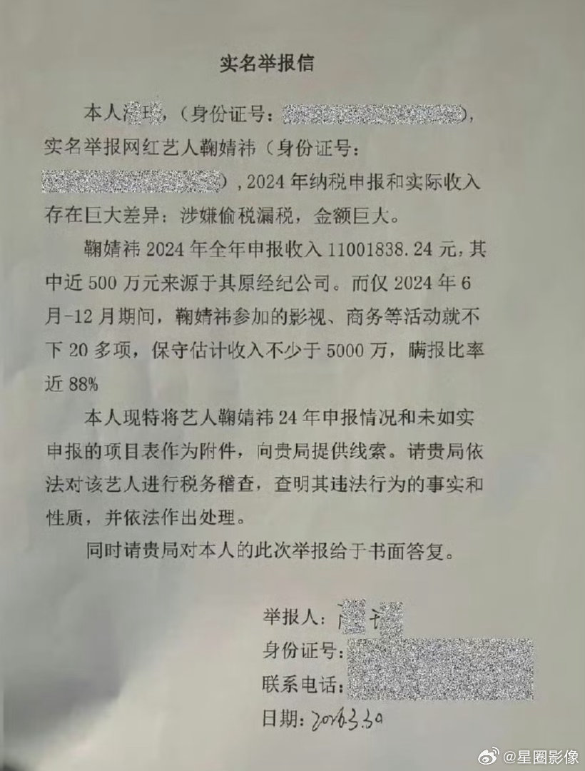 月鳞绮纪 空降就在昨天,鞠婧祎被实名举报税务问题,郭敬明这剧还能空降吗?虽然这材料附件看起来有点随意,只是鞠婧祎24年的一些商务和活动,到底有没有纳入劳务报酬和薪资是关键。但是整体看来有点危啊。