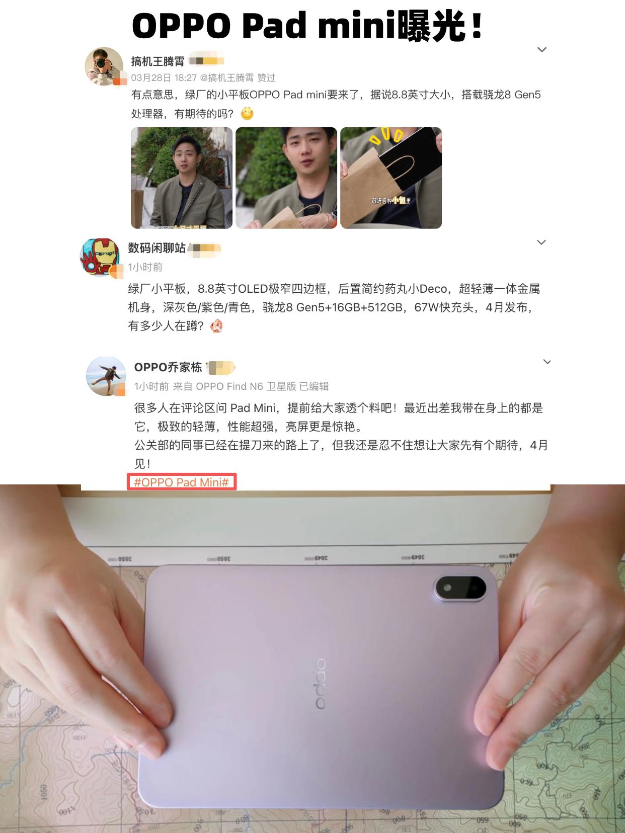 除了iPad mini,目前小平板比较推荐哪一款? 去年我就一直买什么小平板好?我知道iPad mini7各方面非常好,性能强,能用好多年,最近价格也不错,但是对于游戏党还是日常使用,60Hz刷新率我真的绷不住呀。 - 现在新款小平板有联想Y700,骁龙8Elite Gen5芯片,主打游戏,玩游戏自然ok,但不是主流手机厂商,系统看起来比较简单,好像功能不多,比如分屏、多机互联这种主流的功能。 - 目前来看可能是还没发布的OPPO Pad mini比较好,据说是主打全能体验,处理器是骁龙8Gen5,旗舰性能,玩各类游戏都是可以的,还非常轻薄,一体金属机身,我日常想戴着出门或者抱着它躺床上追剧,这个适合吧?目前曝光信息很多,4月发布,目前可以预约了,感觉可以看看。 - 小平板 iPad 平板 iPadmini 联想小平板 OPPO平板 OPPO小平板