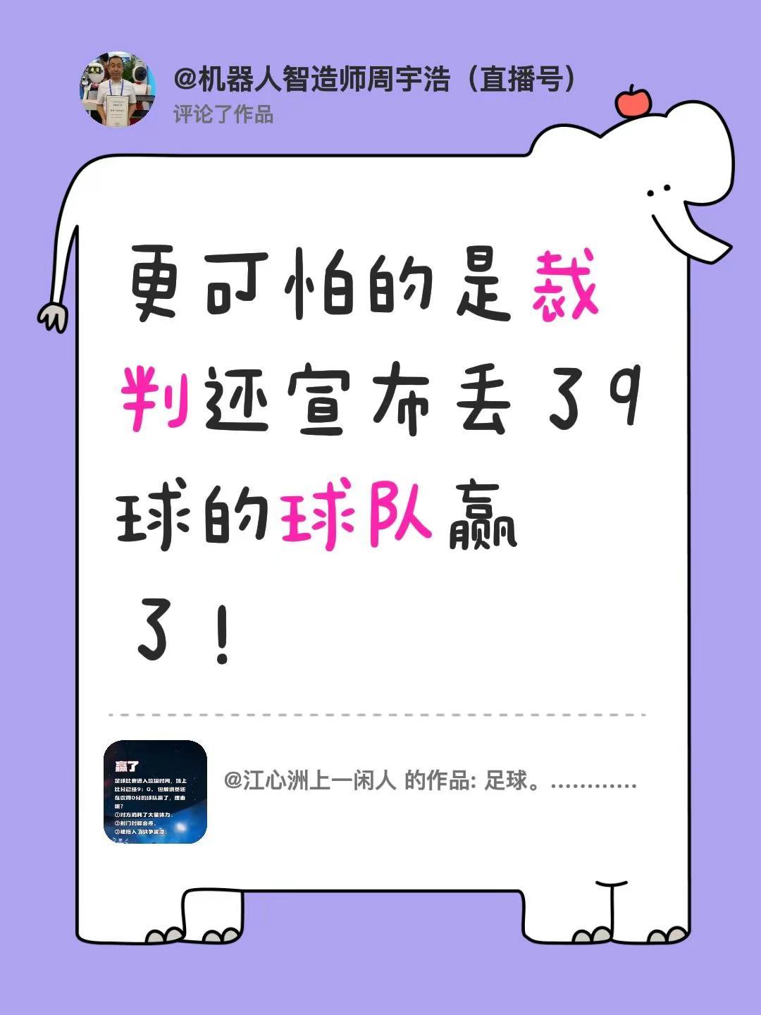 我评论了@江心洲上一闲人的作品:更可怕的是裁判还宣布丢了9球的球队赢了!
