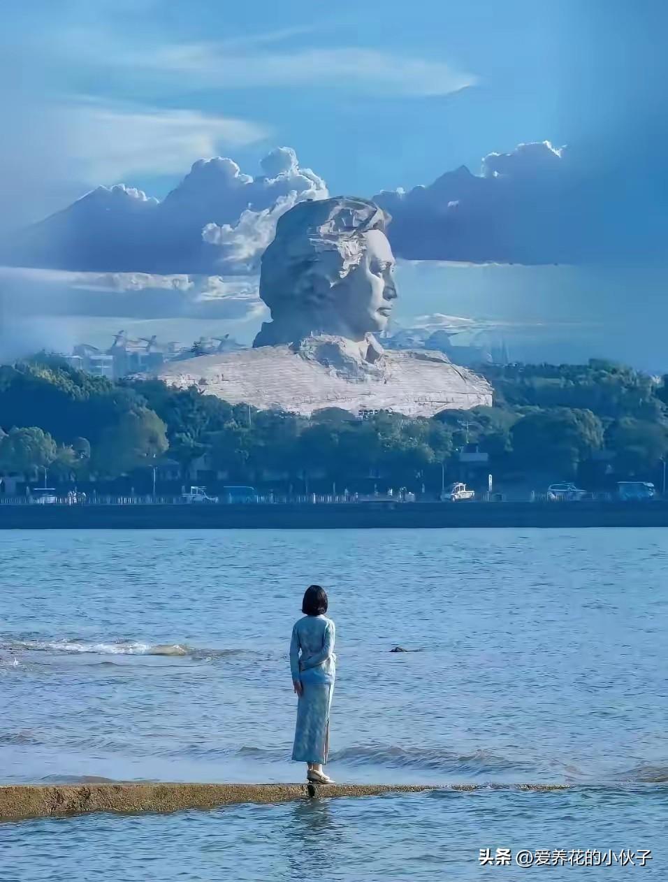 这是2026年我看到最美的一张照片 太美了,风景美,老人家的雕像耸立在那里,看着如此伟岸,如果站着的这位女同志是杨开慧就好了,多希望这样的场景是真的,你们看像么?感觉这张照片是不是真的很有意境?唉,一声叹息,老人家,我们想您了!