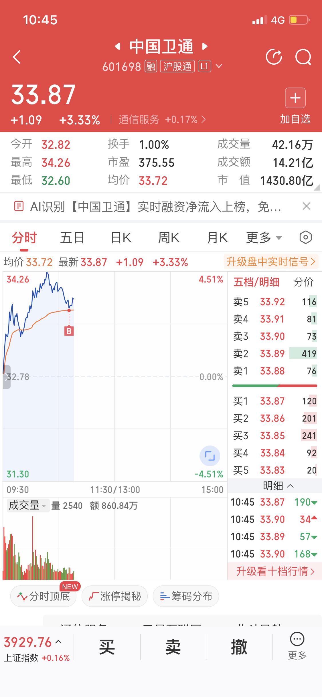 今天我果断买入了海格通信和中国卫通。海格通信在无线通信领域实力强劲,它的产品广泛应用于军事、民用等多个领域,技术研发能力不容小觑,在行业内有着一定的市场份额和口碑。而中国卫通作为国内卫星通信的龙头企业,掌握着稀缺的卫星资源,在卫星通信服务方面优势明显。 现在通信行业发展前景广阔,尤其是卫星通信在未来的物联网、5G 等领域有着巨大的潜力。我期待这两只股票能在未来给我带来不错的收益,就让时间来见证吧。
