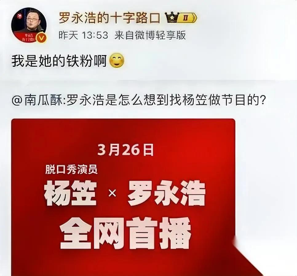 罗永浩涨粉有猫腻? 直到看到这个操作,我惊了 都说罗永浩邀请杨笠后涨粉赚麻了,尤其微博暴增3万粉。可你知道吗?有网友为了骂他,特意下载微博,却发现必须关注7天才能评论!原来这些新增粉丝里,藏着不少"忍辱负重"等时机的"差评党"。表面看是涨粉狂欢,实则是7天后的"定时炸弹"——当这批人能开口时,评论区怕是要炸锅。更绝的是虎扑直接点名杨笠,说她想当"灯塔"却怕成"靶心",这波舆论战,显然还没到收尾的时候。 你觉得罗永浩这波涨粉,是真赢还是埋雷?
