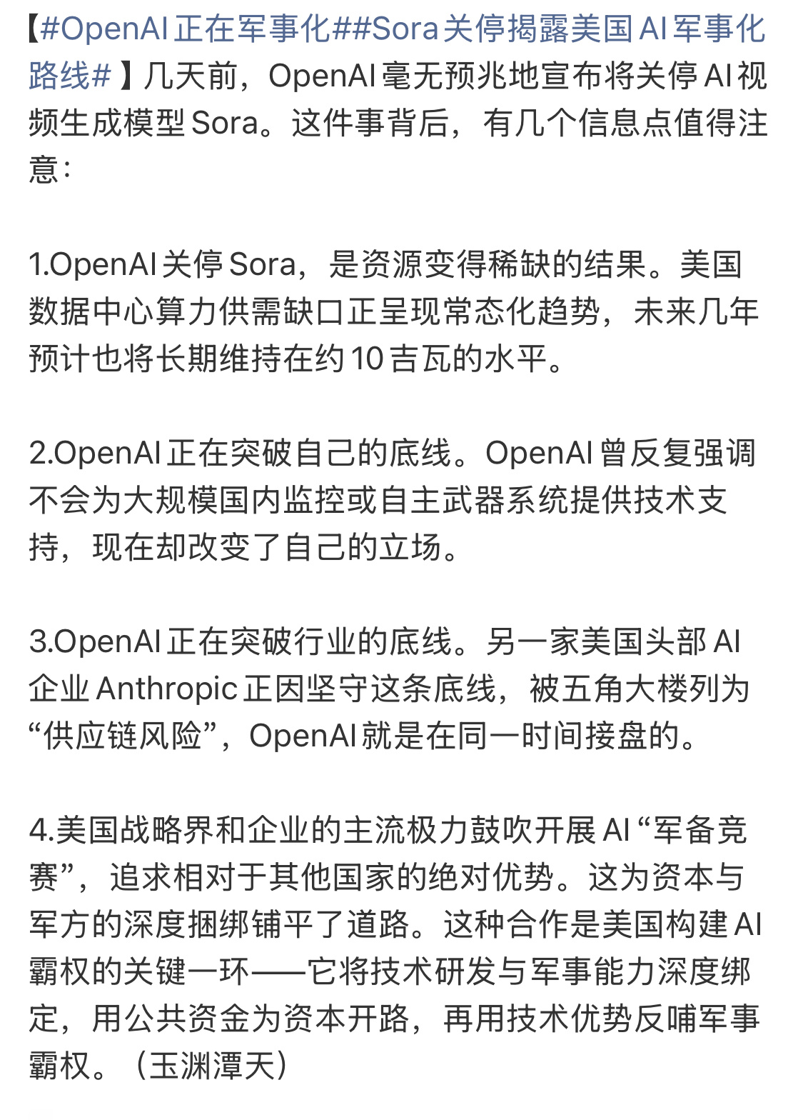 OpenAI正在军事化有一就有二,OpenAI正在突破行业底线,其他同行不会也去捧军方臭脚吧。