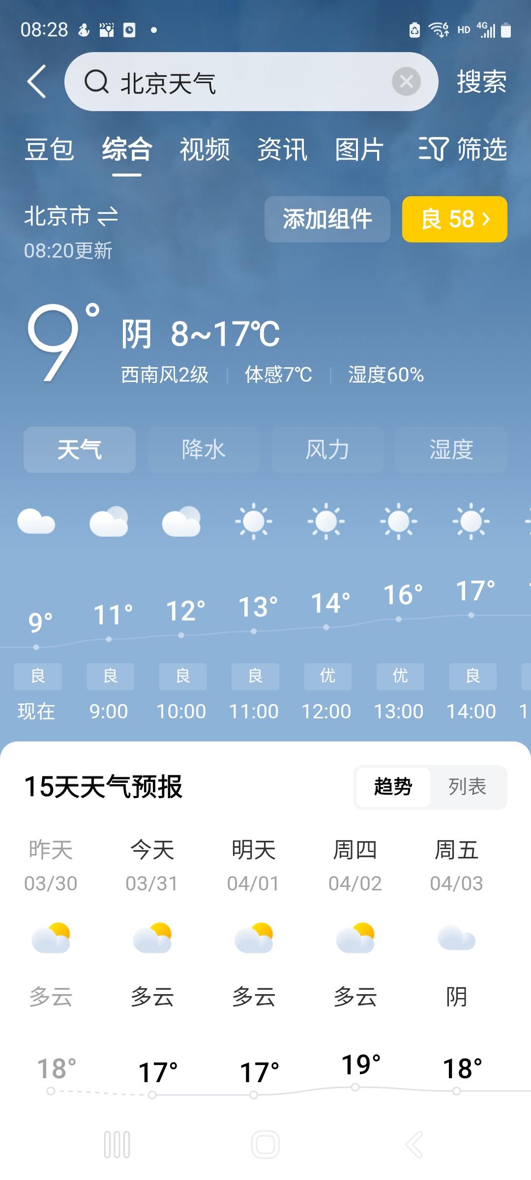 今天北京良,天上见蓝见云,但说有霾,信不?一是我看按世卫组织空气质量好的标准,我们良级是不合格的,有霾的。二是我用肉眼观察,我今天良时所见远景比昨天优时所见同一处远景,要灰,要模糊。见图1、2。 说到昨天,感谢老天好风,昨天给北京在3月连续几十天雾霾中送来的第4个优与真正蓝天。 昨天去门头沟吓了一跳,感觉发现了一个新北京。 没想到北京藏着一条这么宽阔这么有活力奔流的永定河。 没想到群山这么巍峨峻奇,且山桃花烂漫,不止二三座山,而是整个四周群山一层又一层满山遍野的花簇,仿佛连接天空。 在昨天优级的透亮蓝天白云配合下,这山,这河,这滩,这林,这花,一片辽阔古韵。见图8~12。 附图:今日北京上海广州南京长沙城市空气质量报告。 /每日一报。