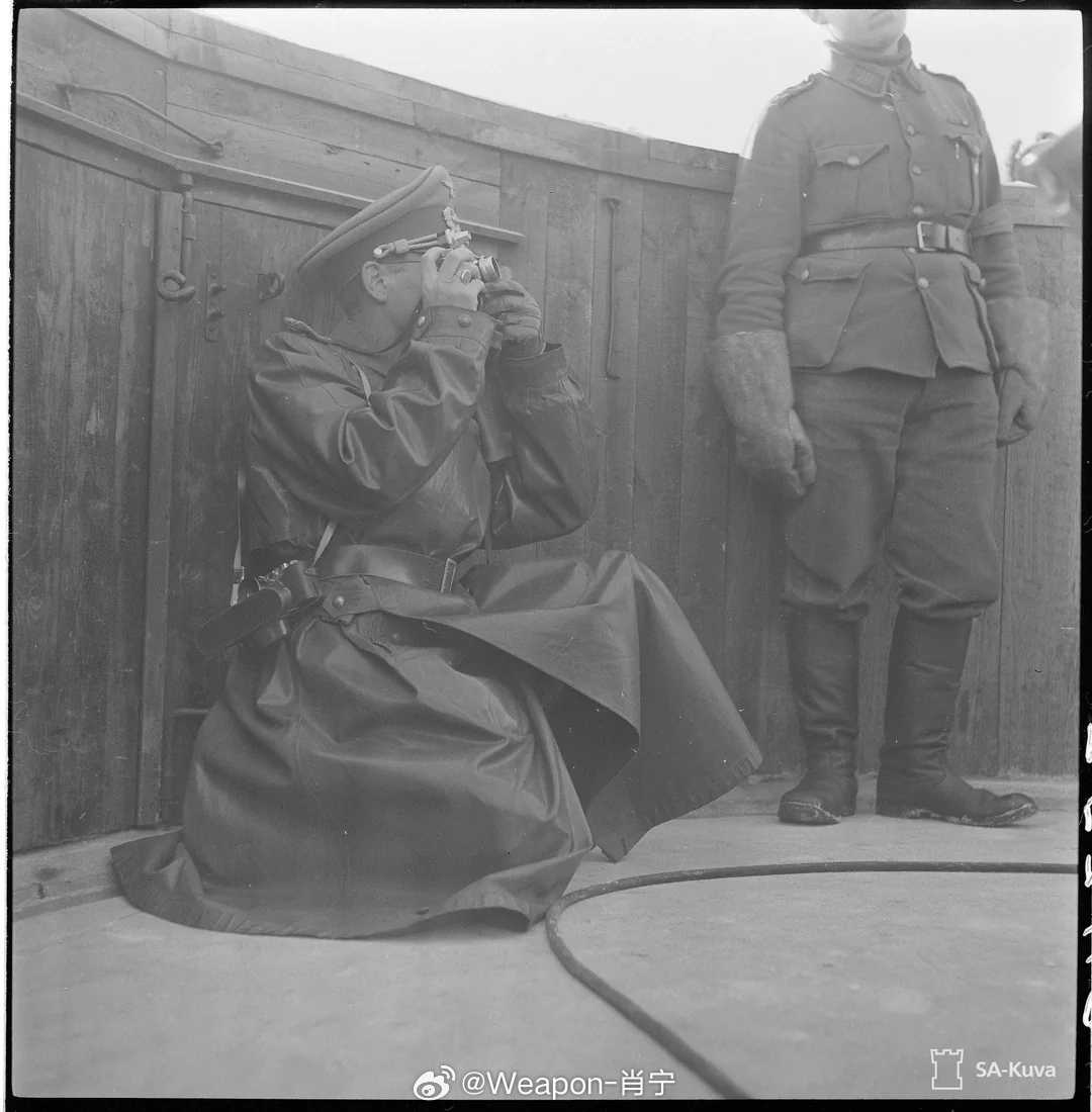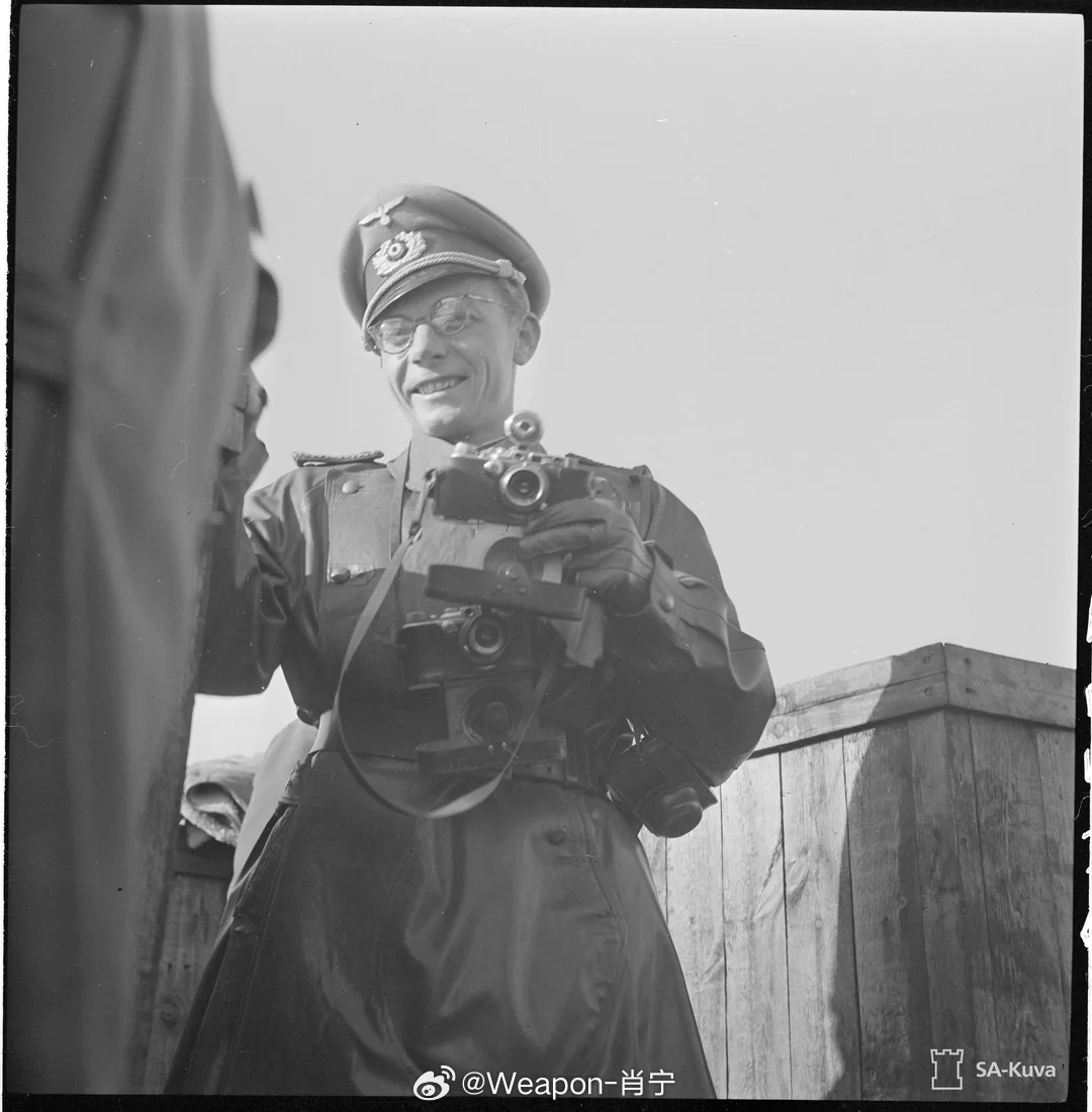 照片中的历史 德军战地记者格林在芬兰赫尔辛基的泰瓦斯卡利奥炮台拍摄照片。战争仍在继续,1942年3月8日。校长能看出他手里拿的是什么相机吗?