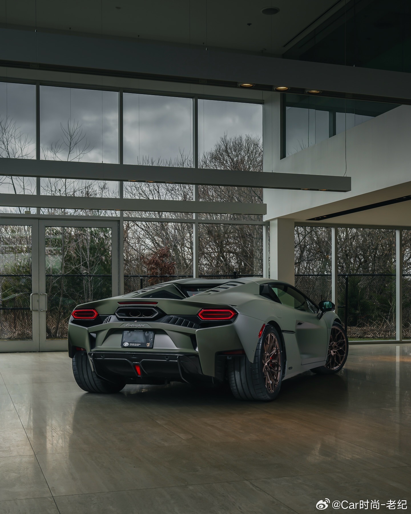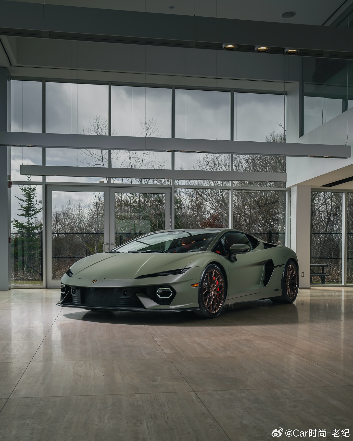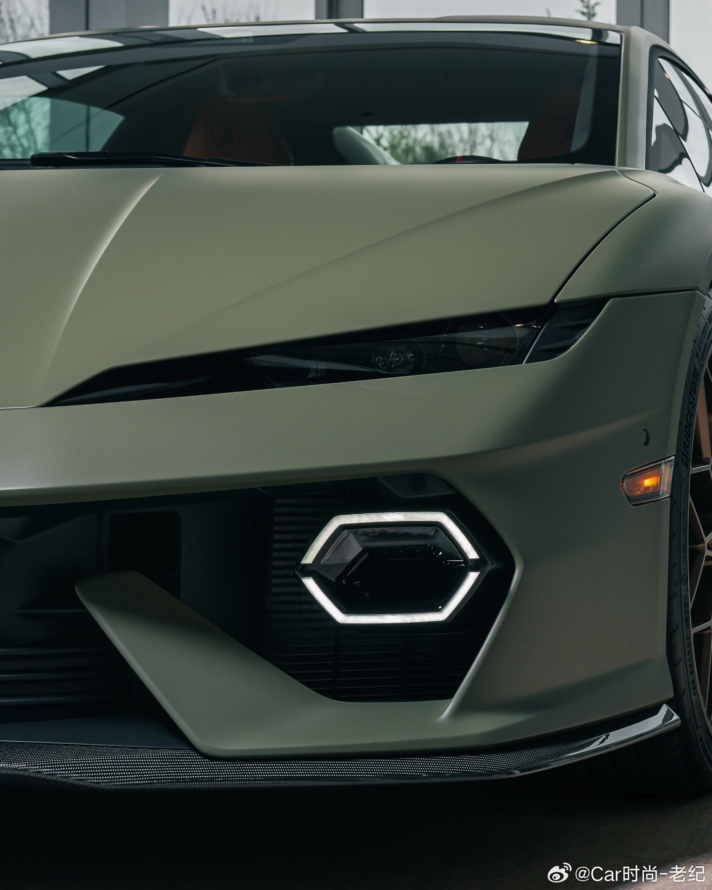 车身采用Ad Personam定制哑光涡轮绿涂装,内饰以黑色与干橙双色对比点缀,通过兰博基尼迄今最前沿的设计语言,彰显出无畏的个性锋芒。