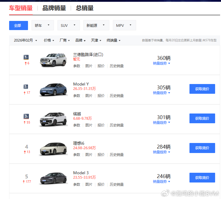 2月,天津卖得最好的是兰德酷路泽……发生了什么?