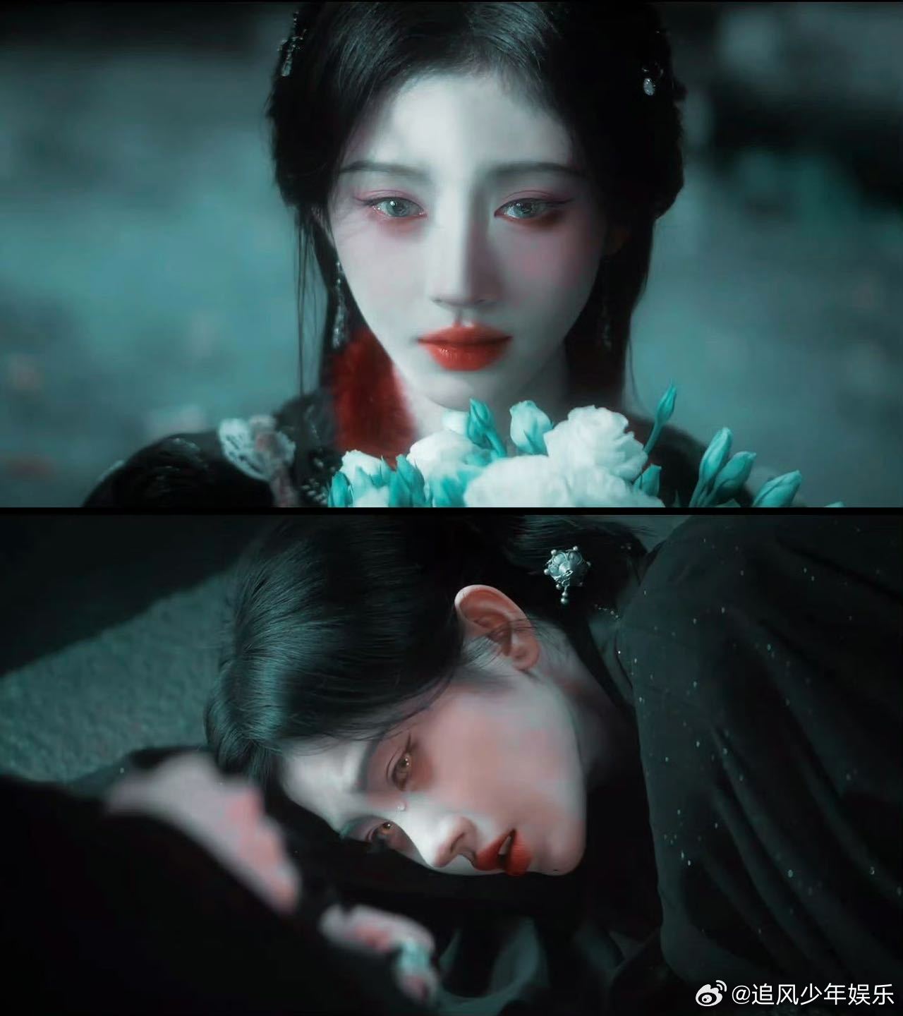 鞠婧祎月鳞绮纪哭戏镜头 露芜衣的泪水像轻纱般柔软,鞠婧祎把狐妖的深情与倔强融入眼神,每一瞬都令人心疼又感动。
