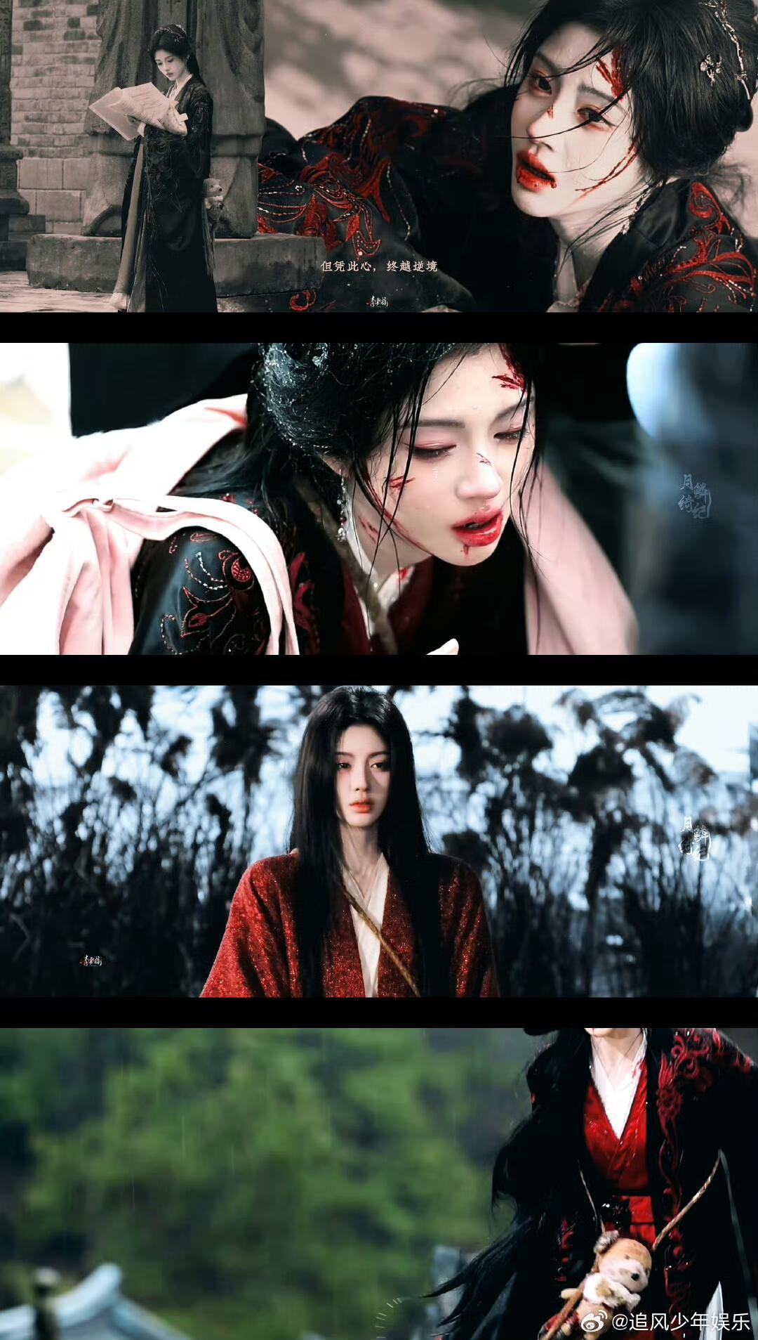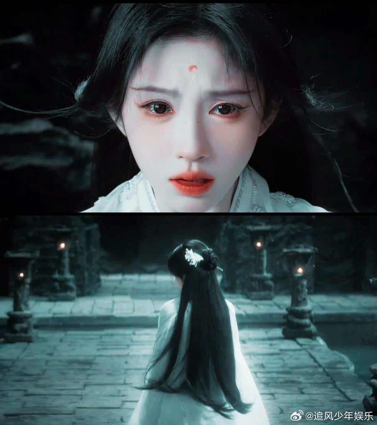 鞠婧祎月鳞绮纪哭戏镜头露芜衣的泪水像轻纱般柔软,鞠婧祎把狐妖的深情与倔强融入眼