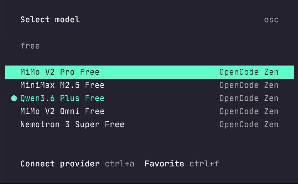 OpenCode 上的免费模型,Qwen3.6 Plus Free 也上了。