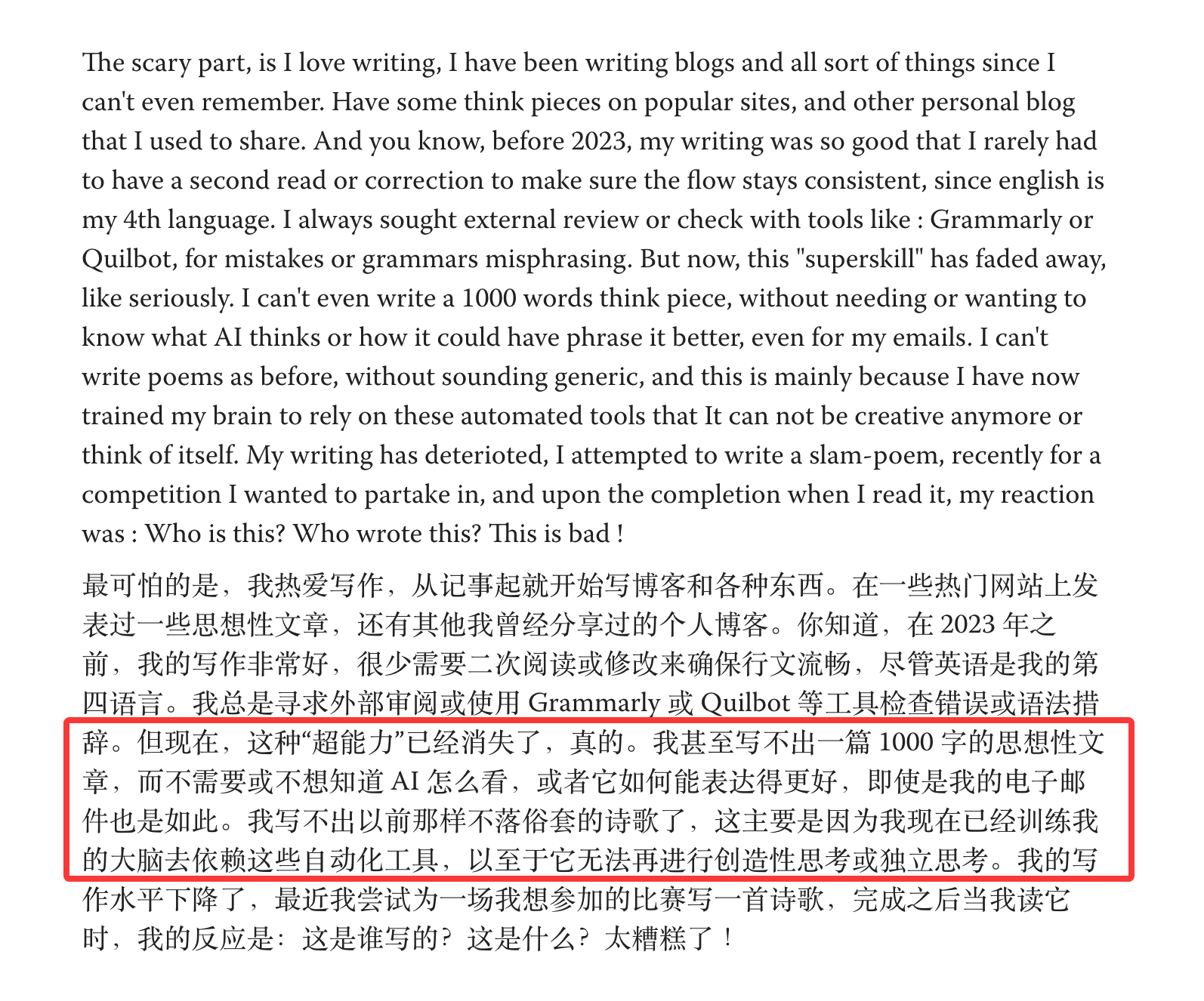文字工作者说,现在没有 AI 辅助,已经不会写文章了。