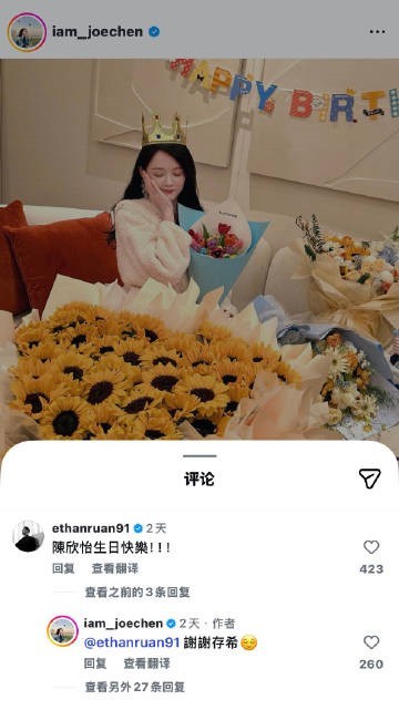 阮经天为陈乔恩庆生阮经天为陈乔恩庆生,还喊她“陈欣怡”,售后又有了!