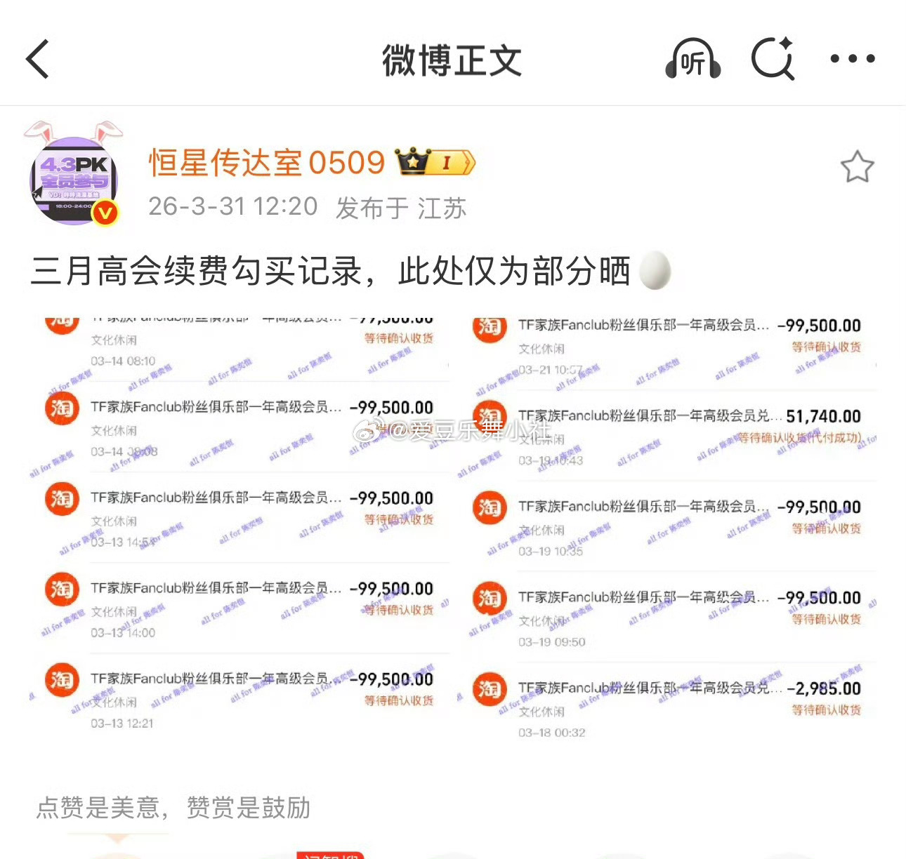 陈奕恒sjz三月高会支出150多万,哼毛爱孩子第一名💜👍。