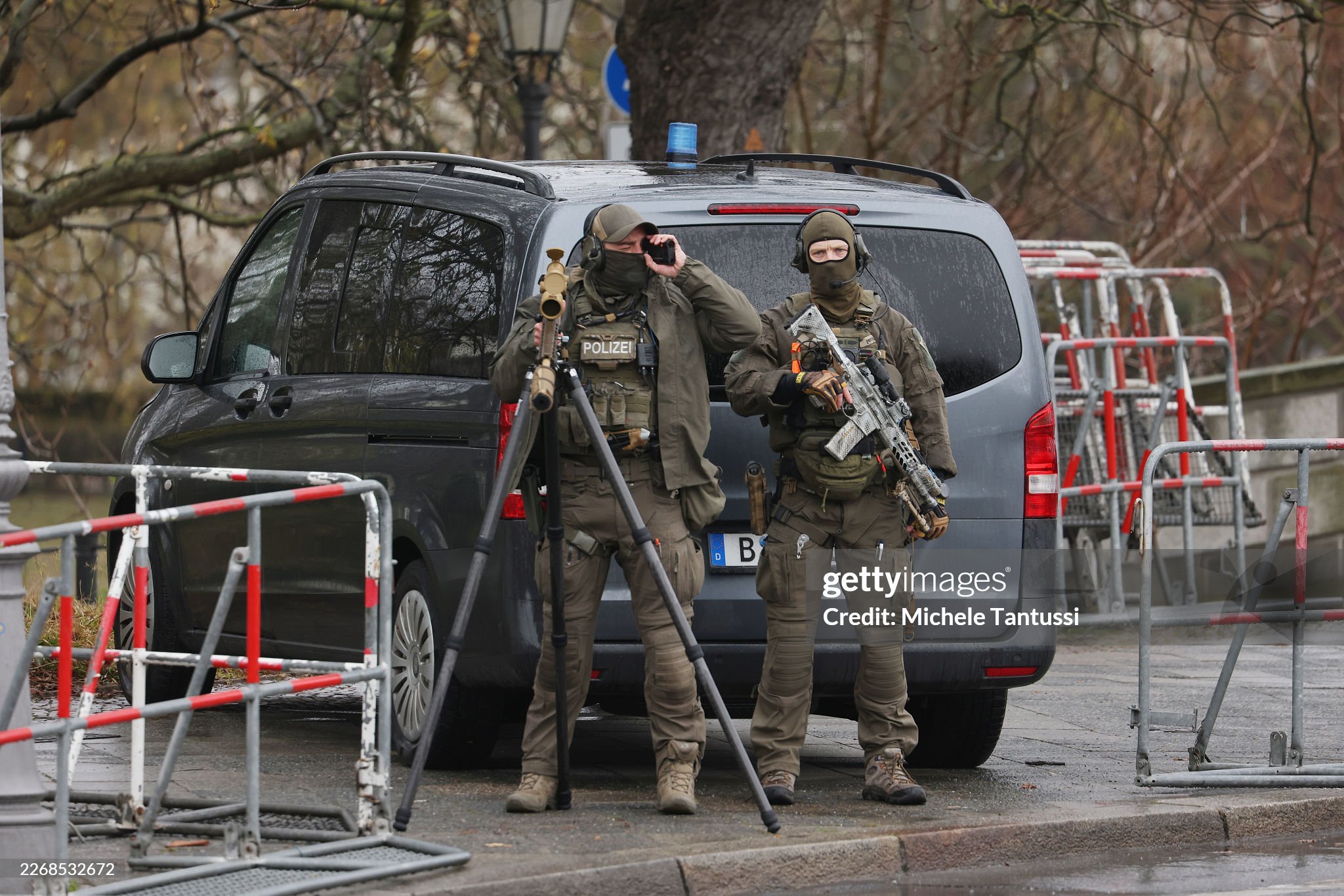 2026年3月30日,叙利亚总统艾哈迈德·沙拉在德国柏林访问期间,柏林警察站在贝