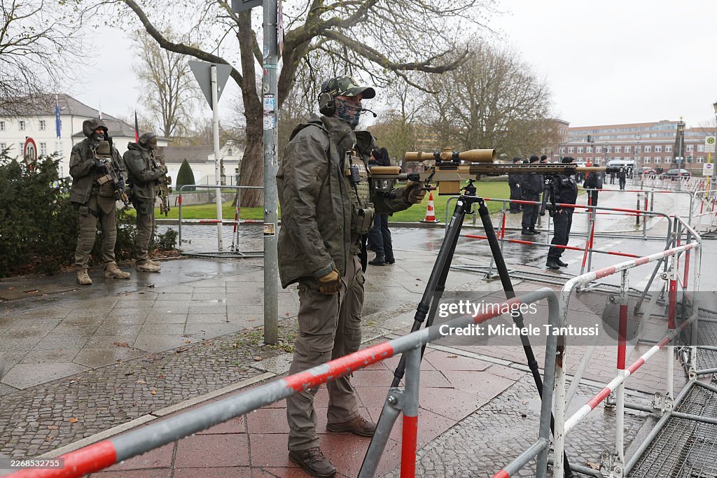 2026年3月30日,叙利亚总统艾哈迈德·沙拉在德国柏林访问期间,柏林警察站在贝尔维尤宫外。