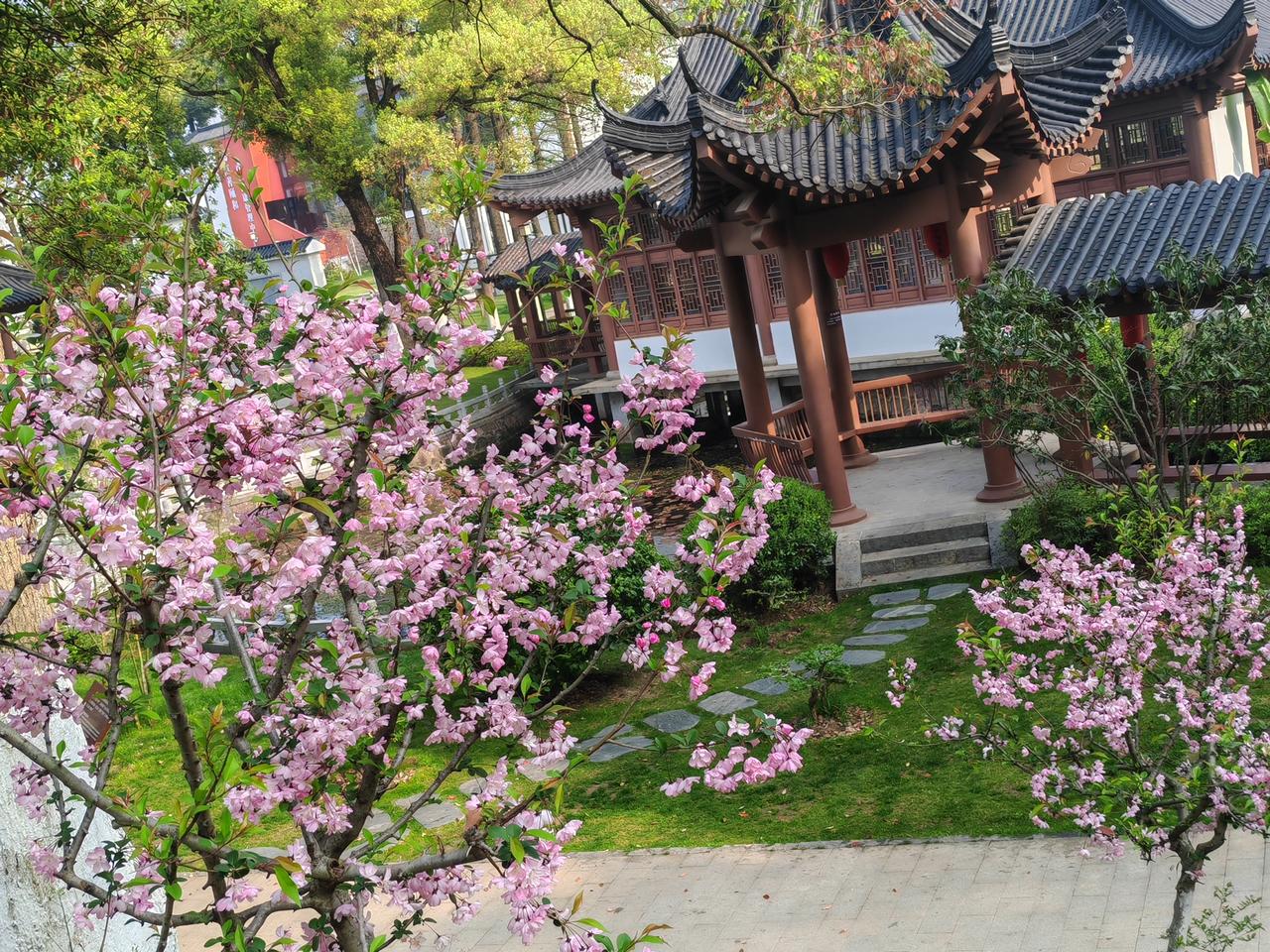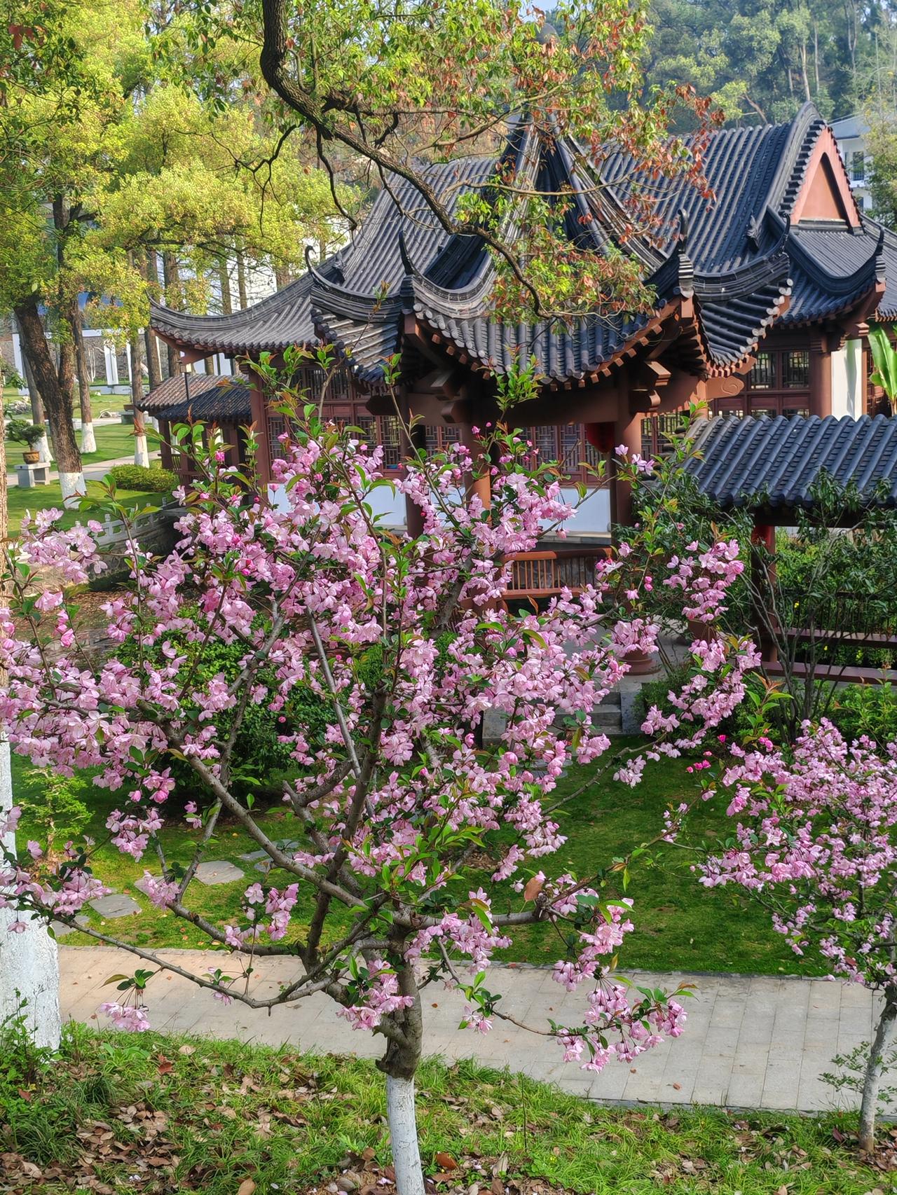 晒图笔记大赛武汉市马鞍山森林公园东湖笛园里的海棠花,在亭台楼阁的衬托下格外美丽。