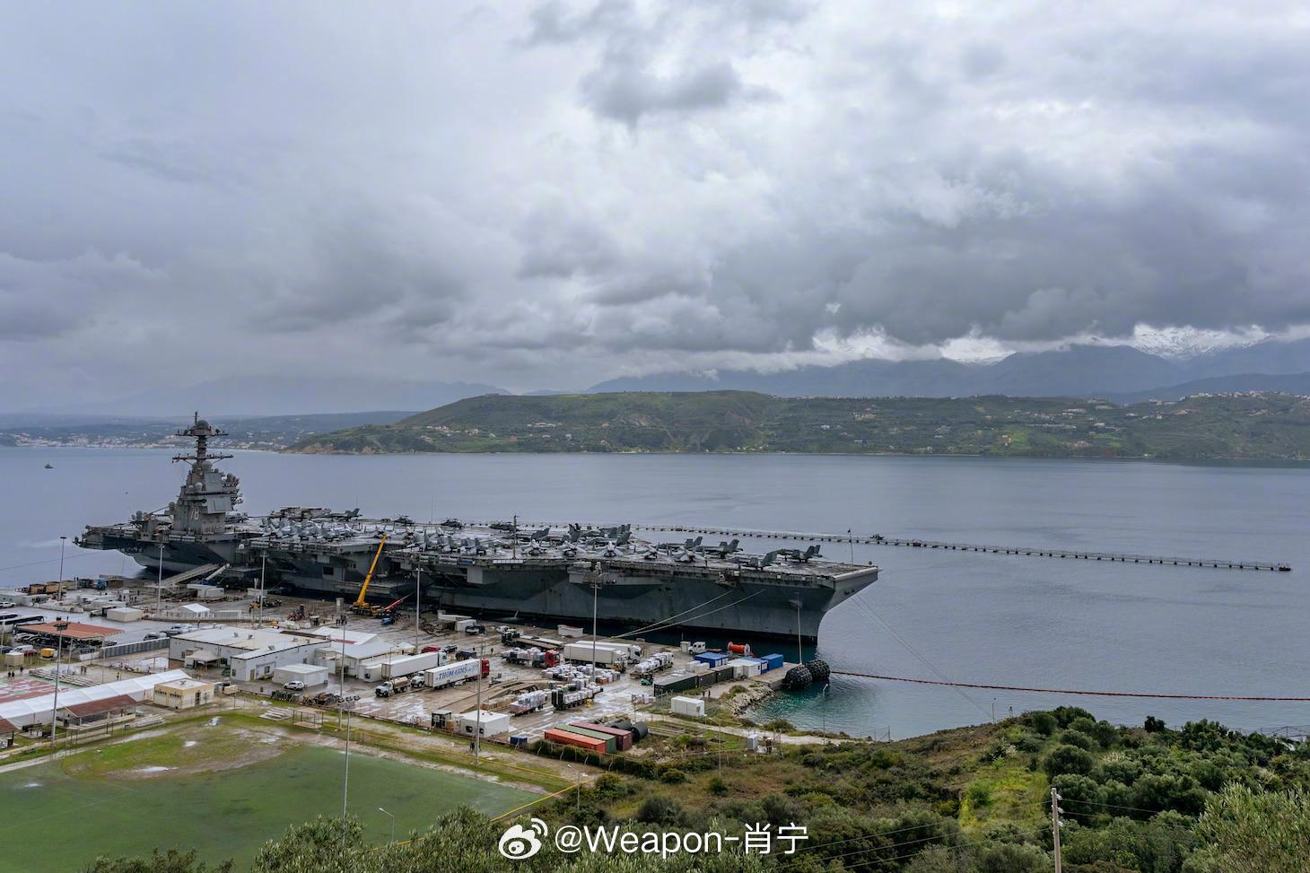 美以伊冲突 2026 年 3 月 23 日,美国海军杰拉尔德·R·福特号航空母舰 (CVN 78) 抵达苏达湾海军支援基地,进行维护和修理,此前该舰在红海执行任务。