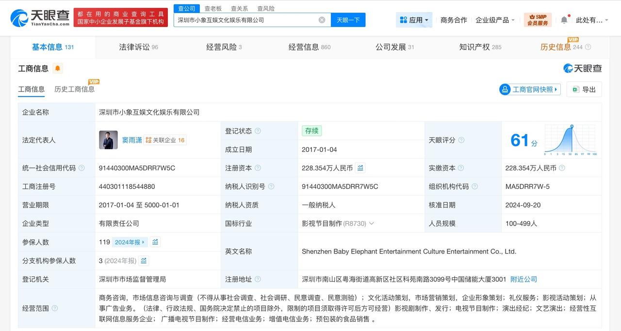 PDD参股的小象互娱被执行1417万 PDD持股一公司被执行1417万 天眼查法律诉讼信息显示,近日,深圳市小象互娱文化娱乐有限公司及旗下武汉颜值星秀传媒有限公司新增一则被执行人信息,执行标的1417万余元,执行法院为上海市浦东新区人民法院。 深圳市小象互娱文化娱乐有限公司成立于2017年1月,法定代表人为窦雨潇,注册资本约228万人民币,经营范围含商务咨询、市场信息咨询与调查、文化活动策划、市场营销策划、企业形象策划、礼仪服务、影视活动策划等。股东信息显示,该公司由窦雨潇、刘谋(PDD)、深圳市腾讯创业基地发展有限公司等共同持股,其中,PDD持股约25%。 天眼查信息: