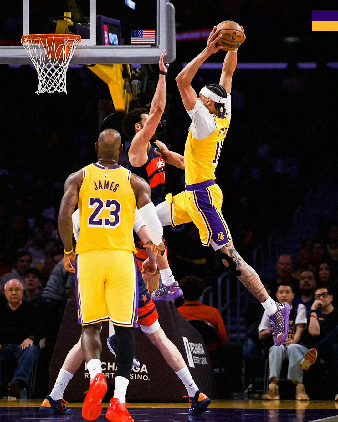 詹姆斯21分10篮板12助攻1盖帽,里夫斯19分3篮板9助攻1抢断,艾顿12分7篮板1助攻,八村14分6篮板,拉拉维亚4分3篮板2助攻,肯纳德19分2篮板1助攻,海斯19分7篮板,范德比尔特4分8篮板1助攻,布朗尼6分1篮板1助攻,八夫金2分!