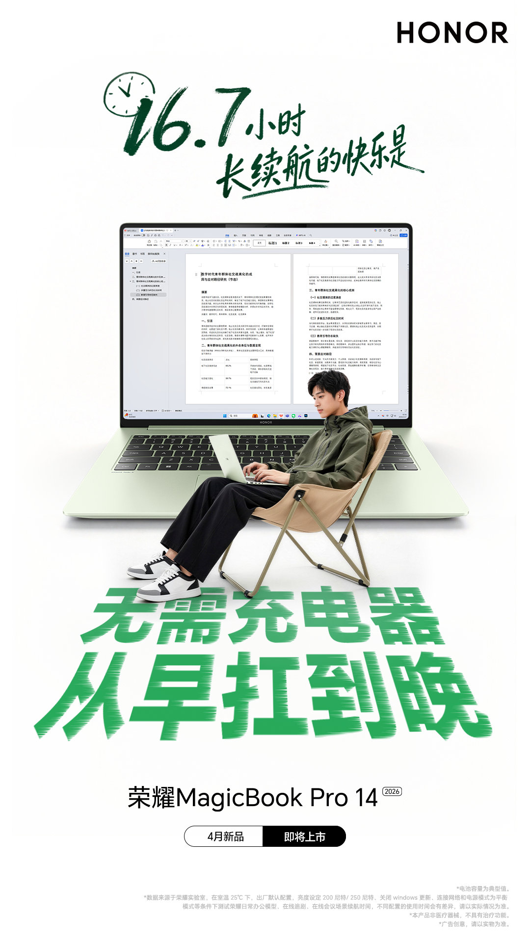 好家伙,你能想象到吗?一个笔记本电脑居然续航比手机的还长,怎么用,都有电!即将发布的荣耀MagicBookPro14 这16.7小时超长续航是肿么做到的?一口气刷完30集热播剧,中途不插电,这荣耀笔记本 也太猛了!