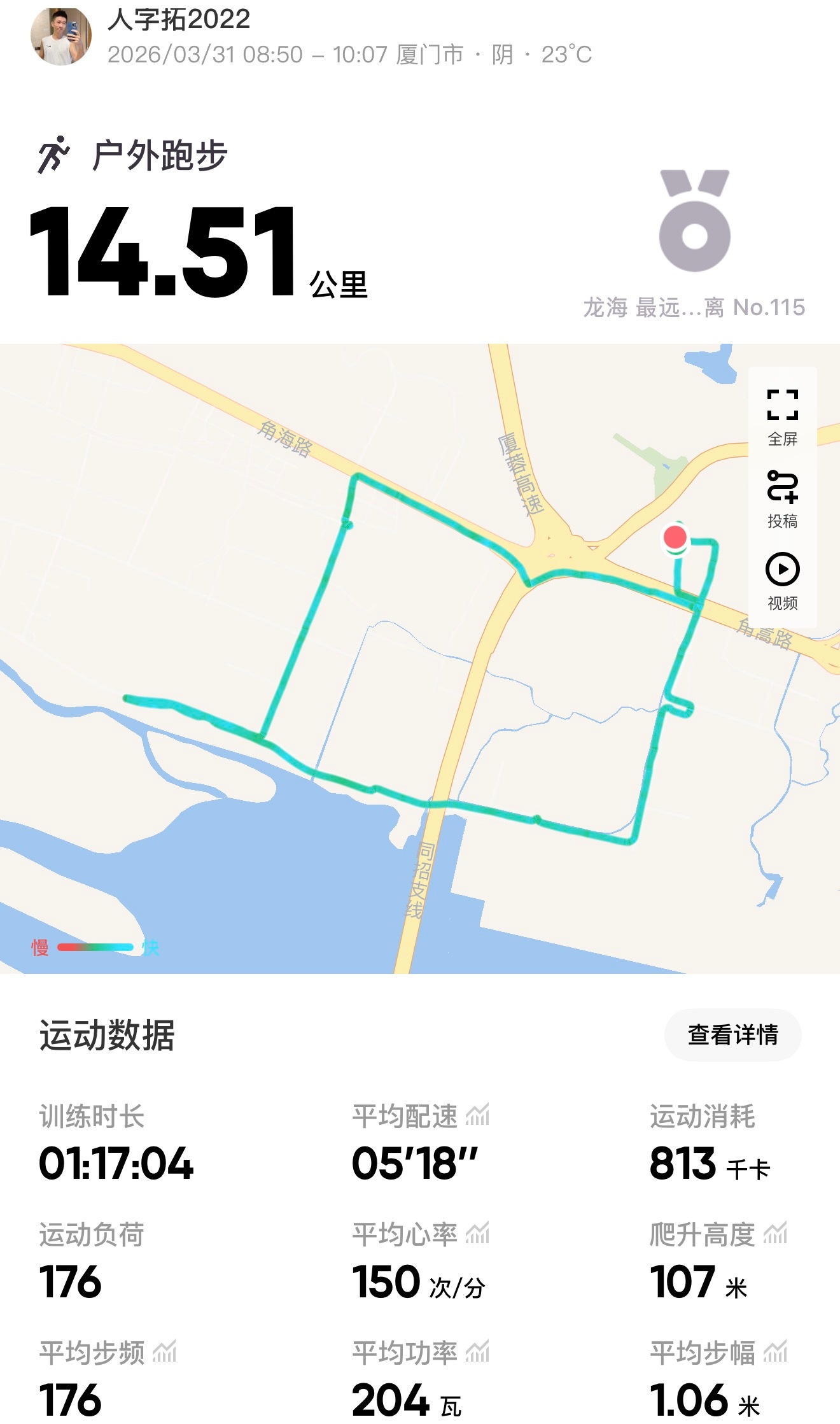 刚好猛噶还没跑,喊了他一起跑,带他走了个新路线,一路顺利完成✅本月目标,虽然体感不是很舒服,但还是刻意放慢了节奏