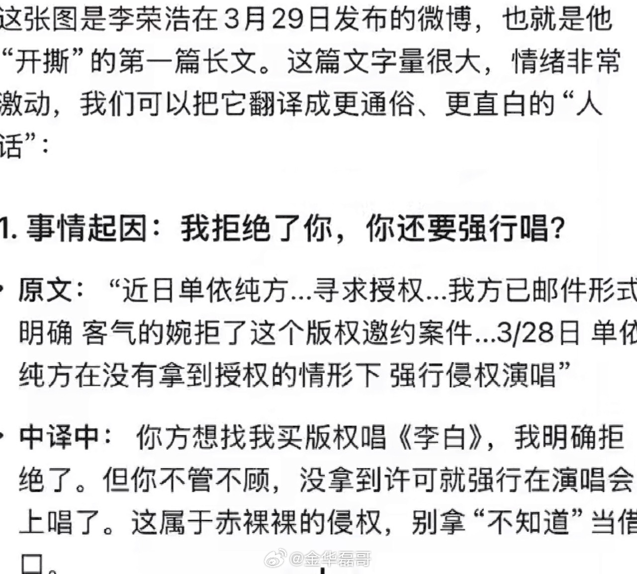 千问说明白了李荣浩为什么生气李白看了都要说一句:“要是能重来,版权得整明白。” 掏心掏肺给支持,转头版权玩“先斩后奏”?这波是真诚喂了白眼狼。心疼浩哥,原创者的底线不是用来试探的,维权刚一点,是对才华最基本的体面!李白风波引发全民再关注版权意识