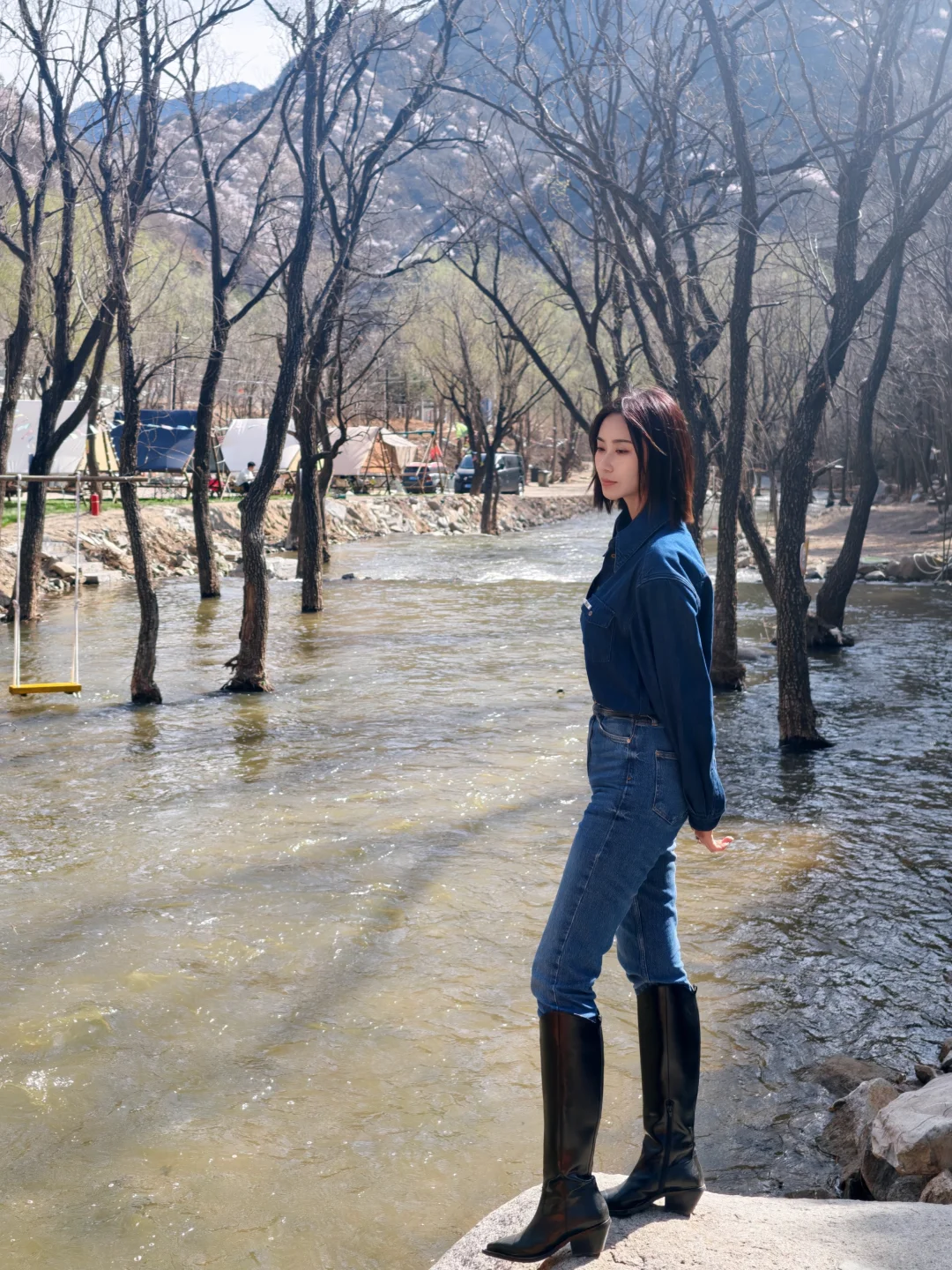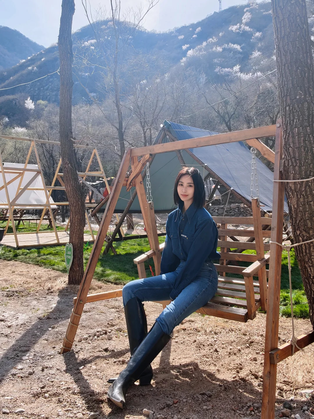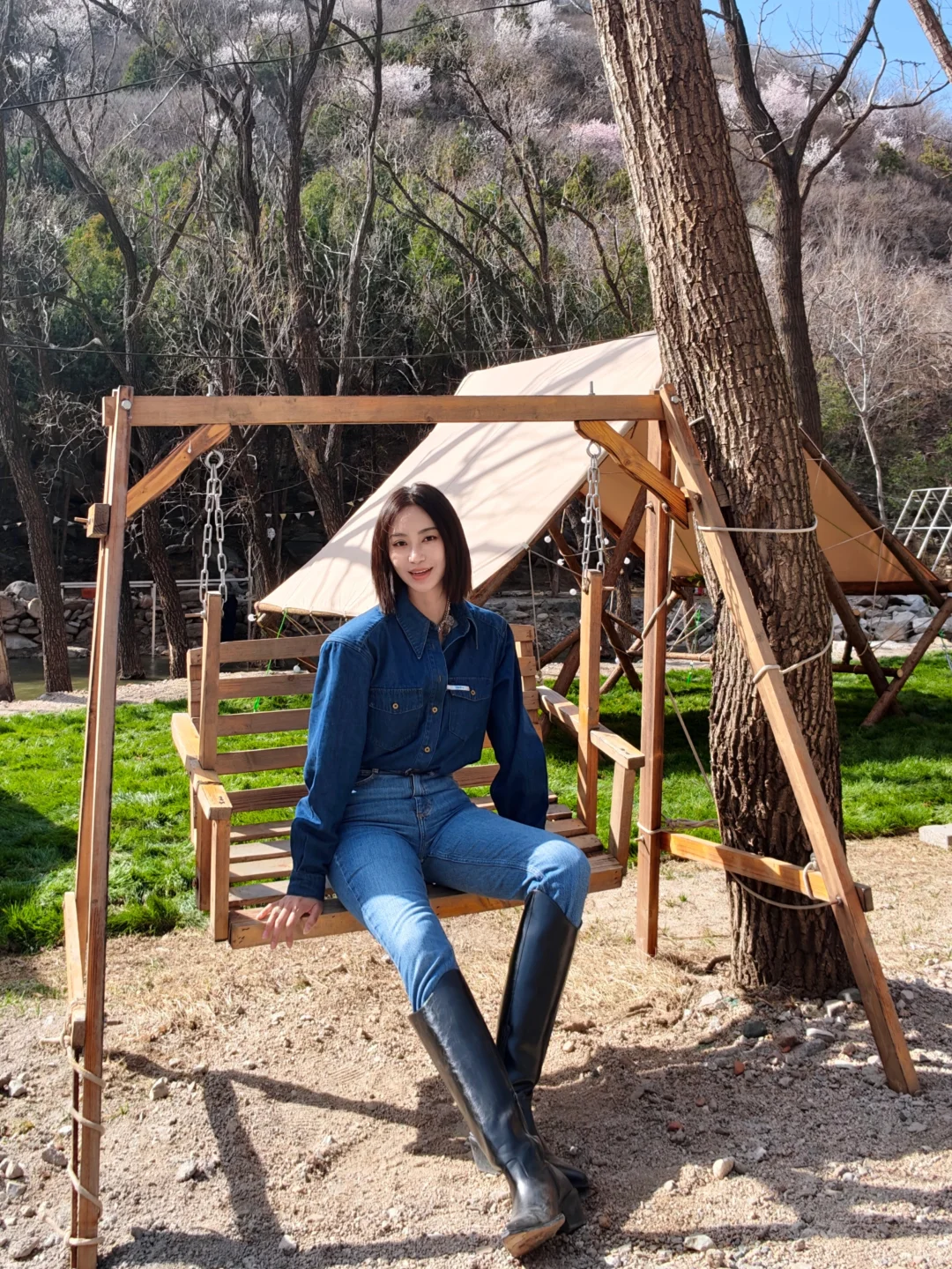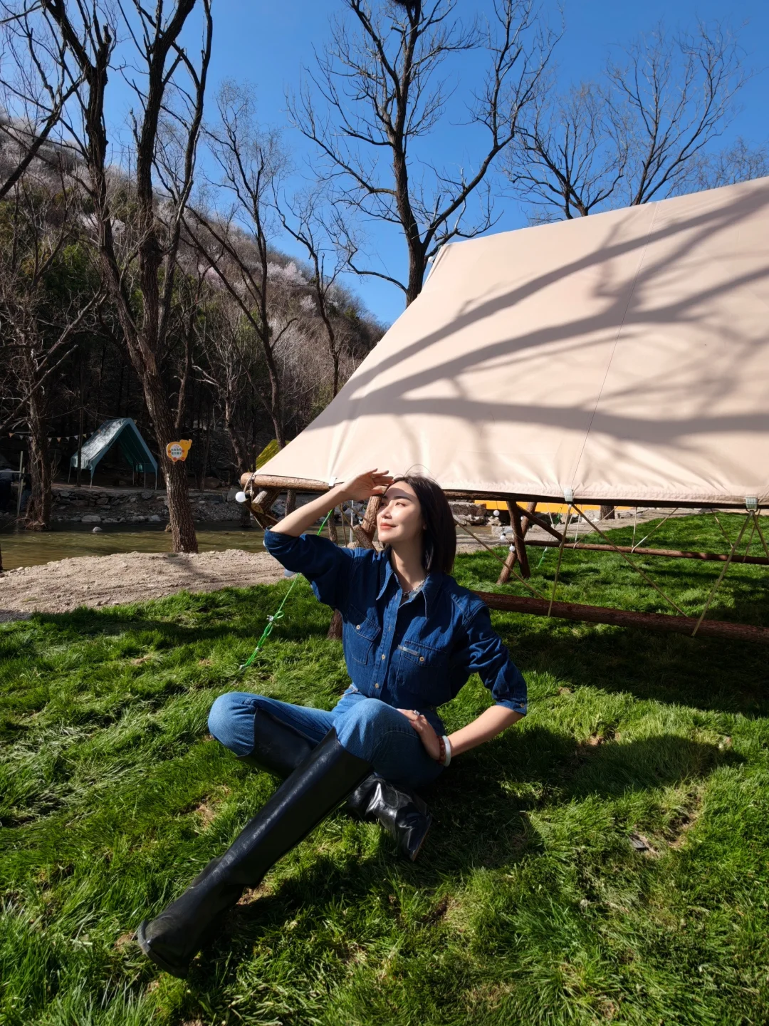 昌平这家露营地真的挖到宝! 一身牛仔套装+长靴,上松下紧美式复古感拉满, 在山野秋千上随便拍都超出片, 休闲又显身材,带娃带狗露营也能美美的~ 📍导航:昌平区京银路「水林涧露营」 有山有水有草坪,来的路上还有超美的桃花谷, 漫山遍野都是浅粉色桃花树,浪漫至极。 娃和狗狗能撒欢玩,大人能躺平晒太阳烤串, 北京周末遛娃、露营的绝佳选择!