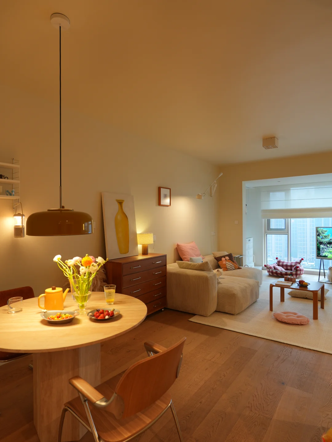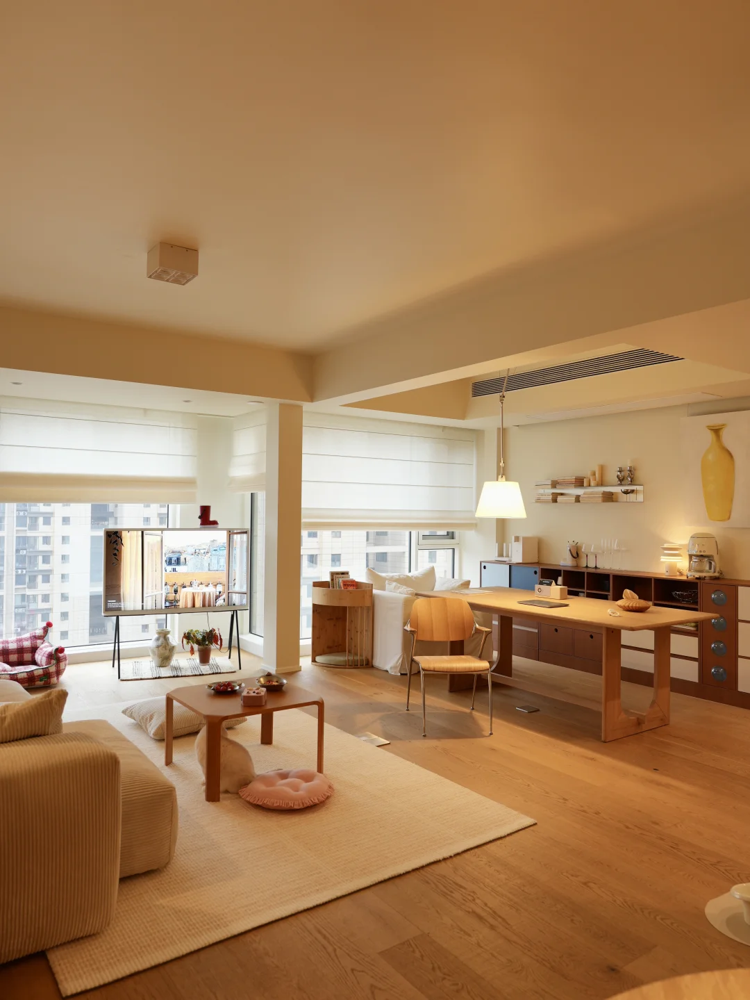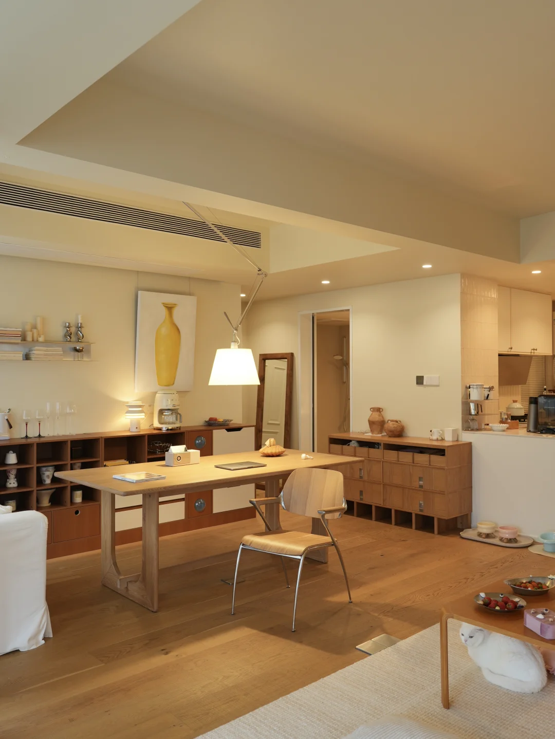 去客厅化的小家,因一张原木长桌而出彩