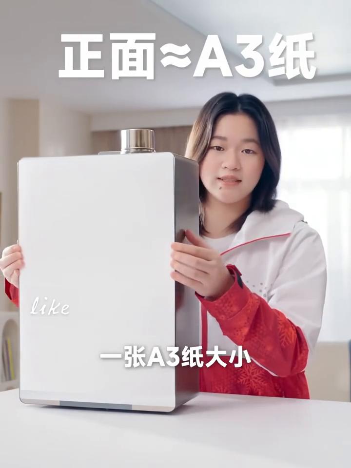 今天让大家看看万家乐小体积热水器能有多小。正面差不多一张A3纸大小,更绝的在这,厚度仅15cm。万家乐全球首创小体积科技,小体积大实力。