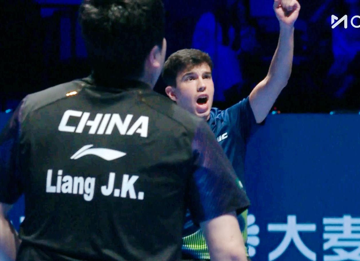 我去!梁靖崑要爆冷吗? 这个阿根廷球员西福恩特斯实力一点也弱。 前两局 两人打成了1:1平。 局间梁靖崑被王皓批评一顿, 让他抬起头来, 别皱皱巴巴。 第三局 大胖终于打的积极了, 不过对手的发球抢攻也不错, 4:4平之后, 对手连赢3球, 7:4拉开比分, 而且对手退台后的远台能力相当强。 大胖反手大角度连续暴拍, 追到了8:8平, 但是对手连赢3球, 11;8拿下第三局。