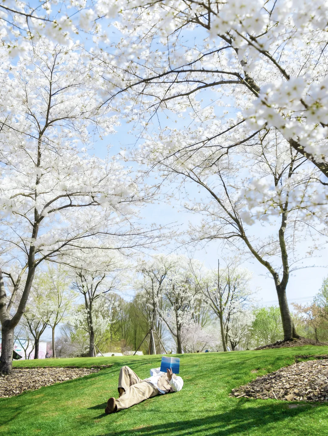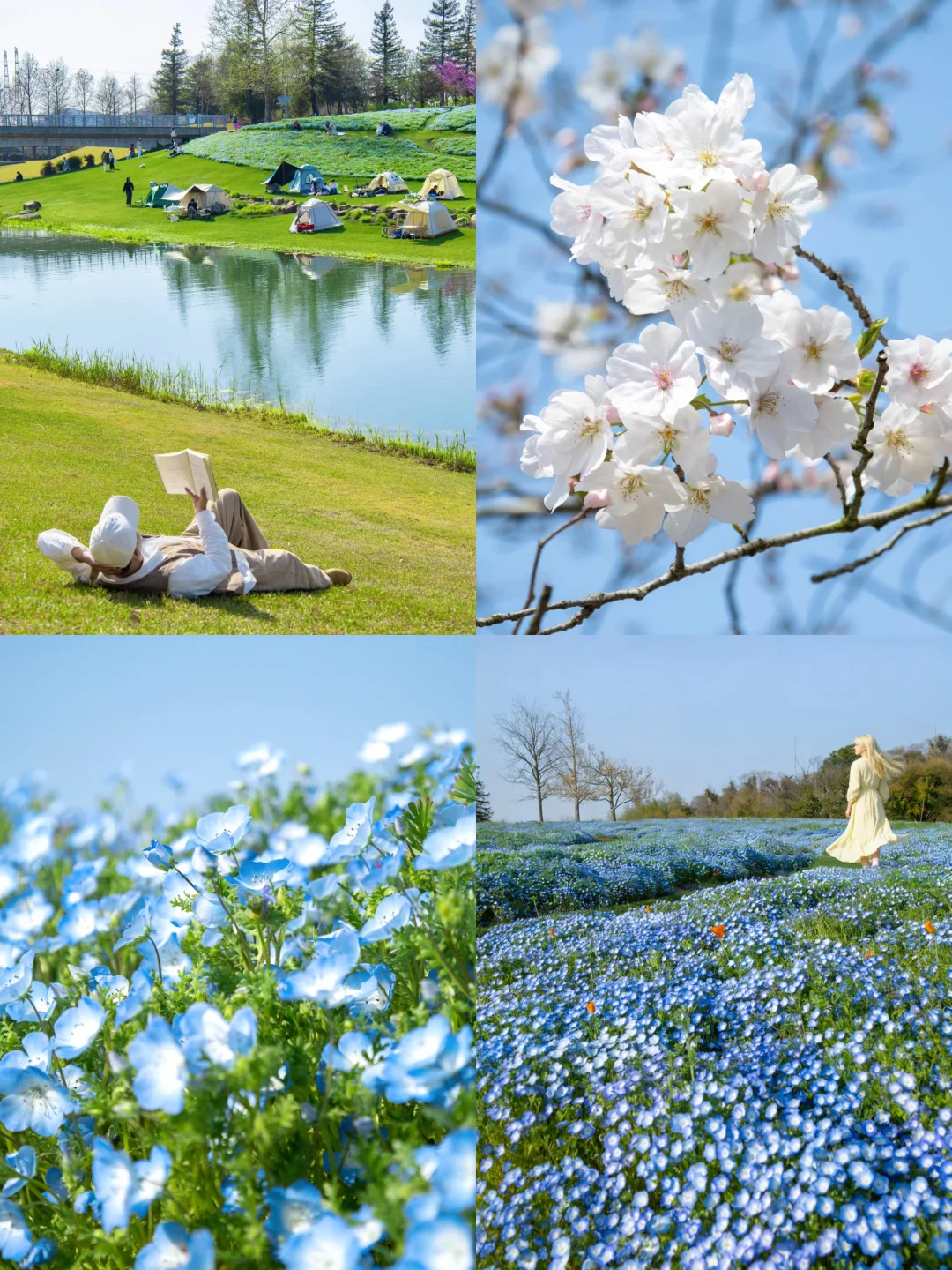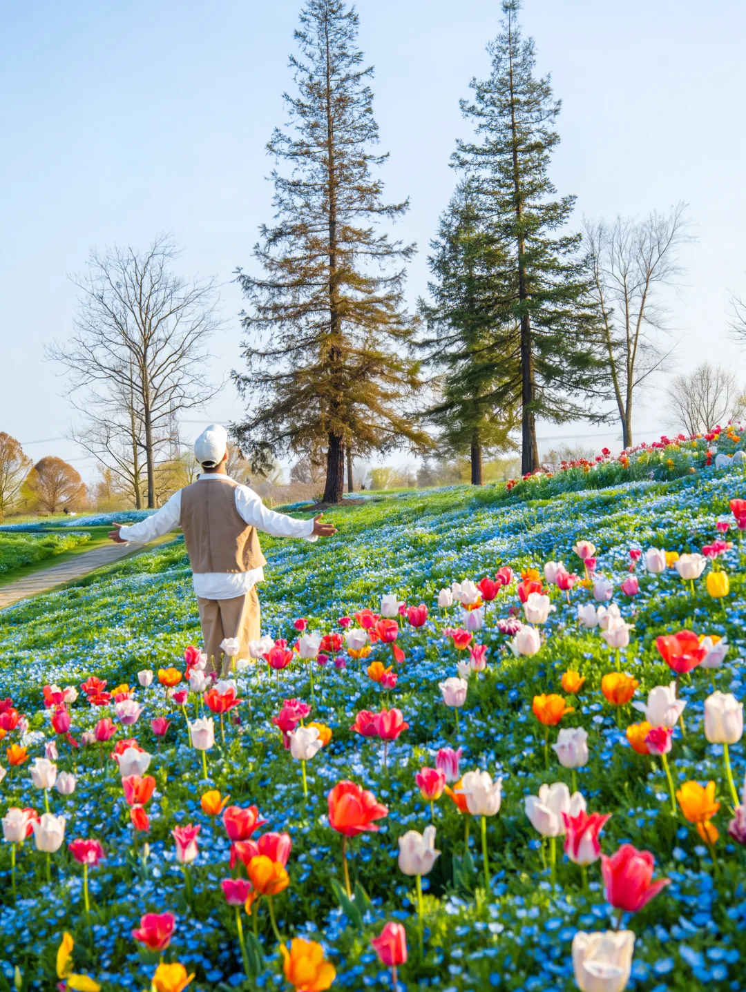 樱花开了30%,郁金香虞美人已全面开放,春天来这里和朋友野餐露营真的太惬意了~在3号门附近还发现了一片蓝色的喜林草花海,妥妥现实版的莫奈花园。