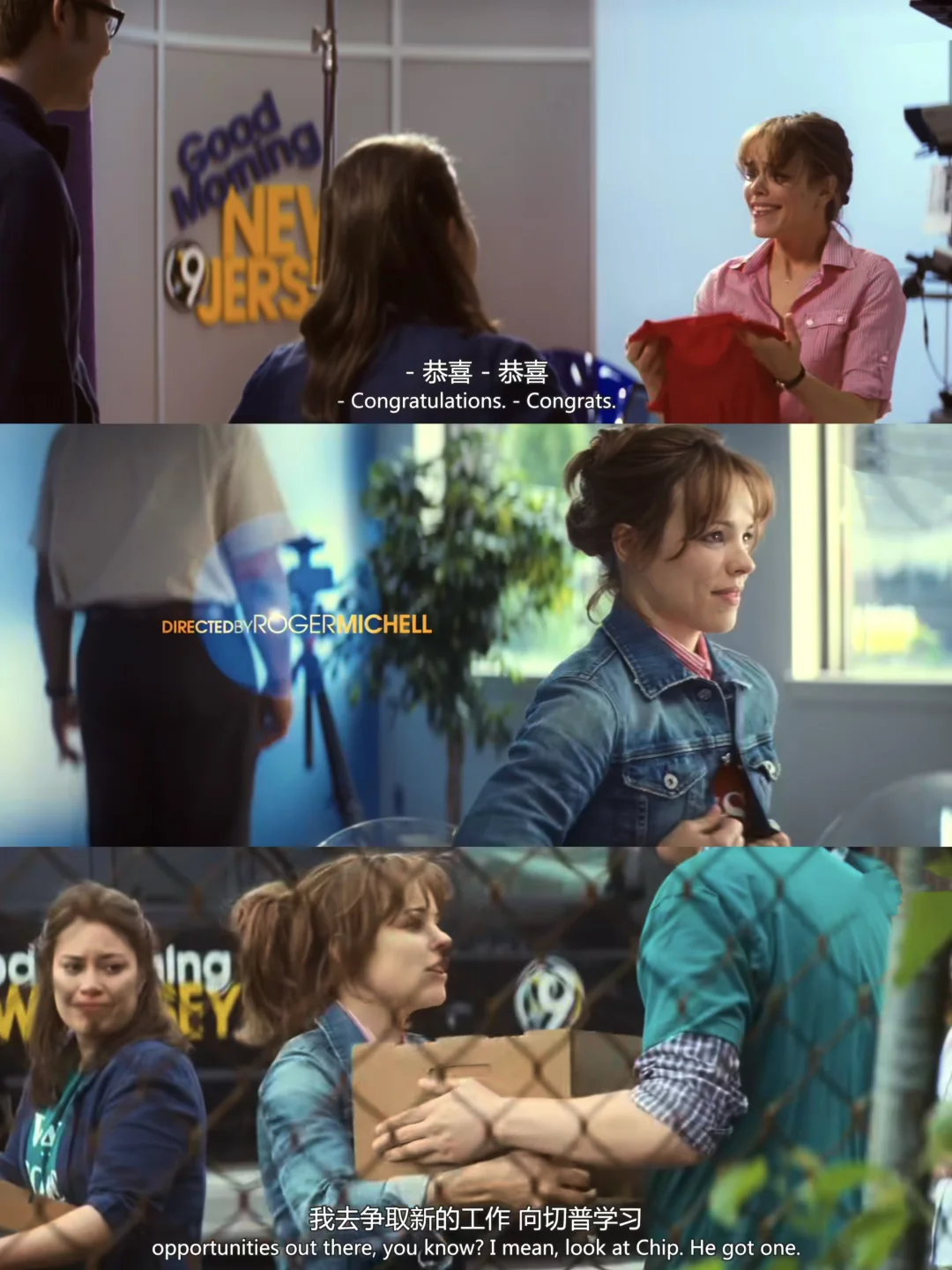瑞秋饰演的女主贝琪开场就被公司裁员,虽然很努力,但简历投了一堆都石沉大海,妥妥的人生低谷期。就在她快放弃的时候,竟然意外接到了一份“拯救濒临停播的早间新闻节目”的工作…影片的大概内容也围绕这份工作来展开。