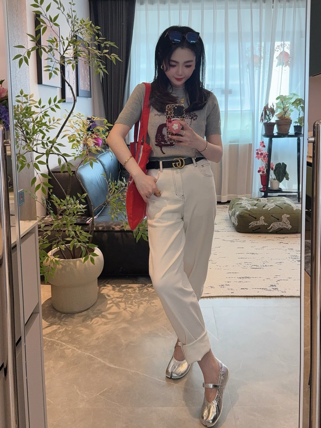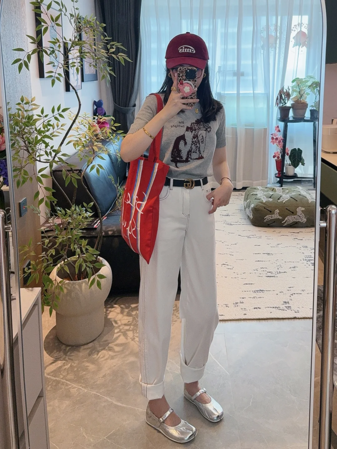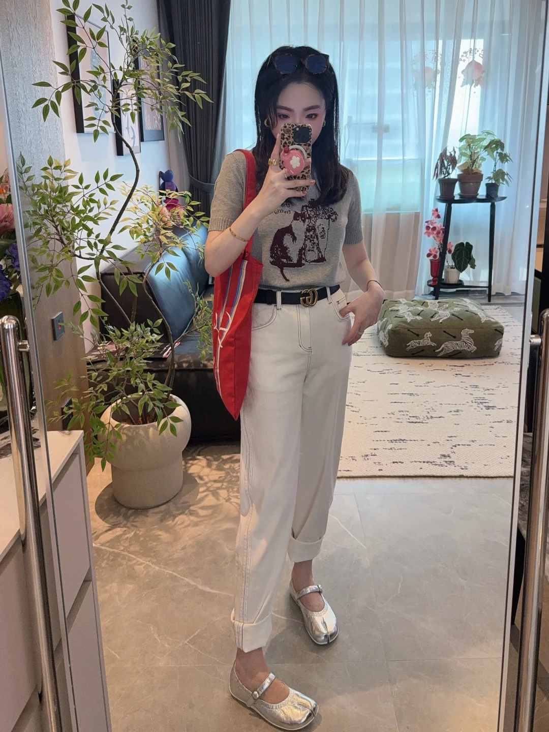 针织衫牛仔裤帆布包,松弛又舒适的高级感~~ 阴雨绵绵的周一,看看阳光明媚时候的照片叭~☀️☁️🌿