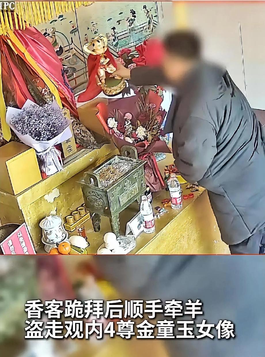 一般人可干不出来这事儿来! 这是真“求”财啊!俩口子,真是不是一家人不进一家门,去庙里求财,看见金童玉女像挺好,直接偷摸给带回家了! 万万没想到,还没握热乎呢,直接就被帽子叔叔给抓获了,真是蠢啊! 这次鞍山的帽子叔叔真是太给力了! 给这两口子给整服了!