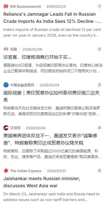 第一面白旗举起,俄罗斯终于看清,关键时刻谁才是真朋友,俄罗斯没想到,第一个扔下白旗的,不是西方盟国,也不是多变的中东石油国家,而是看起来“关系不错”的印度。   麻烦看官老爷们右上角点击一下“关注”,既方便您进行讨论和分享,又能给您带来更多优质的内容,感谢您的支持!   大家都说“战场无亚军”,可在俄乌冲突这场掰手腕的较量中,虽然战场上硝烟还没散,但在谈判桌和能源市场上,第一面“白旗”已经举起来了。   举起这面旗的,不是一开打就跑得没影的欧洲国家,也不是那些左右摇摆的中东油霸,而是俄罗斯一直觉得关系处得还不错的“老朋友”——印度。   这事儿说起来挺打脸的。自从2022年俄乌掐架开始,西方对俄罗斯搞起了“能源封锁”,想把俄罗斯的石油踢出国际市场。那时候,俄罗斯扭头看向东方,印度这个南亚大户倒是很讲义气,撸起袖子就开始疯狂扫货,成了俄罗斯石油的头号大买家之一。那时候两国的关系,看着真是热乎得很。   可谁能想到,这“塑料兄弟情”说变就变。到了2026年初,大家回头一算账,发现印度从俄罗斯买油的数量从每天200多万桶,断崖式跌到了110万桶左右,直接砍了将近一半。更要命的是,印度好几个大炼油厂,包括那个巨无霸信实工业,都悄悄暂停了跟俄罗斯的新订单。   印度这一手操作,直接把俄罗斯整懵了。为什么?因为美国这时候出来搅局了。特朗普那边跟印度谈了个买卖:你印度不是想卖东西到美国不被加税吗?可以,条件就是你得少买甚至不买俄罗斯的油,改买我们美国的。为了让印度下决心,美国甚至直接放话,你要是还买俄罗斯的油,我就给你加征25%的惩罚性关税。   这招“胡萝卜加大棒”对印度果然管用。印度马上心领神会,在和美国签的临时贸易协议里,承诺要买美国超过5000亿美元的能源、技术和农产品。莫迪那边虽然没直说“我不买俄罗斯油了”,但底下炼油厂的动作很诚实:原本定好的4月份交货的俄罗斯油,统统不签合同了,转头开始加大从中东、非洲甚至南美找货源。   这一下,俄罗斯算是彻底看清了印度到底是啥样的朋友。在俄罗斯最需要有人撑腰的时候,印度确实跑来捡了不少便宜油,但这纯粹是因为俄罗斯的油打折打得狠,是真便宜。一旦美国那边给出了更大的利益,或者说油价那点折扣不够吸引力了,印度翻脸比翻书还快。   其实印度这种“骑墙派”的做法也是老传统了。它一直玩的就是“多边下注”的平衡术,一边跟俄罗斯搞军事合作,一边又跟美国搞“印太战略”。只是在俄罗斯看来,之前觉得这种关系好歹有点“战略互信”,现在才发现,在真金白银面前,那点信任薄得像张纸。   更有意思的是,这边印度开始冷落俄罗斯,那边中国反而成了俄罗斯的“定心丸”。数据显示,就在印度缩减订单的同时,中国1月份进口俄罗斯原油的量冲到了2024年3月以来的最高点。为了留住这个大客户,俄罗斯卖家甚至主动把给中国的折扣幅度拉到了历史新高。   当然,印度也不敢把事做绝。毕竟家里还有一堆苏联时代留下的老装备要维修保养,库丹库拉姆核电站还得靠俄罗斯人维护。所以印度外长苏杰生前脚刚跟美国签完协议,后脚就在新德里会见俄罗斯副外长,满脸堆笑地说要“进一步扩大战略伙伴关系”。   这种“左右横跳”的走钢丝表演,暴露了国际政治最残酷的真相:在关键时刻,没有什么真正的朋友,只有算不完的利益。对于俄罗斯来说,这算是交了一笔昂贵的学费,也让他们彻底清醒了——在国际能源市场这个大赌场里,只有像中国这样拥有庞大且稳定需求的玩家,才是能扛过风浪的压舱石。至于印度,当这第一面“白旗”升起时,就已经证明了它只是个精明的生意人罢了。