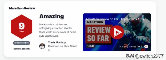 【充了值就是不一样】在三月初上线后,IGN终于在三月结束前发布了《失落星船:马拉松》的媒体评测文章,给出了9分的高分,并获得了编辑之选的称号! 简评: 《马拉松》是一款冷酷无情且毫不妥协的撤离类射击游戏,它让你经历的每一分地狱般的磨难都是值得的。 评分 9分 总评: 《马拉松》门槛极高、容错率低、阴森得令人不安,而且玩家群里全是只想用砖头拍碎你脑袋的暴力狂,但也正因如此,它成为了我心目中有史以来最爱的撤离类射击游戏。射击手感具备了你对Bungie游戏所期待的一切,战利品和成长系统让我完全沉迷,即便游玩了几十个小时,地图依然能带给我惊喜。此外,终局活动以及揭开那些令人不安的背景故事的过程,绝对值得你留下来探索。当然,本作仍有很大的改进空间,比如新手引导和UI界面确实做得很烂,而且我们已经需要更多地图和平衡性调整来改变玩法环境,但与Bungie所实现的成就相比,这些问题显得微不足道。坦白说,《马拉松》简直酷毙了,它已成为我近期最痴迷的 PvP 游戏。