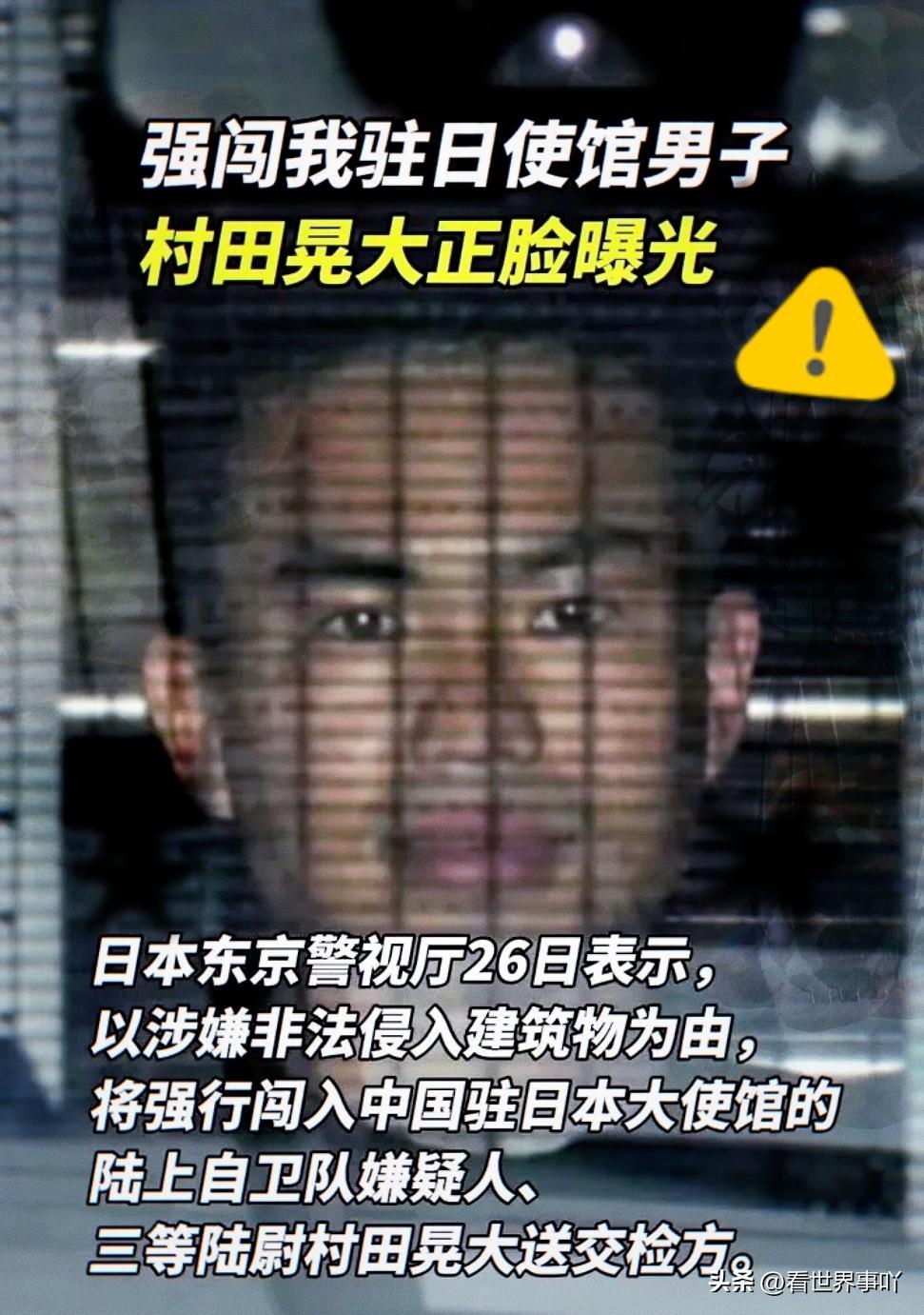 那个闯我们大使馆的日本军官,最狠的不是他翻墙,也不是他买刀。是咱们的人把他当场按住后,大使馆的铁门紧闭了整整三个小时,日本警察,就在外面等着。 日本陆上自卫队23岁三等陆尉村田晃大持刀闯入中国驻日本大使馆,威胁杀害外交人员,随即被中方人员依法控制。三小时后,中方依照法定程序将其移交日本警方,日本当局对此事反应极其冷淡,未有政府官员及国会议员就此发表正式公开意见,这起闯馆事件也持续引发关注。 这紧闭的三小时铁门,从来不是单纯的处置时间,而是中国外交主权不容丝毫侵犯的硬核宣告。驻外使馆是国家领土的延伸,每一寸主权都寸步不让,这份强硬背后,是国家综合实力的坚实底气,更是对每一位外交人员安全的全力守护,也让世界看清,中国维护自身权益的决心,从来都不是一句空话。 村田晃大的作案动机明确,其持刀翻墙闯入中国驻日大使馆,扬言要以“神的名义”杀害中国外交人员,自称此举是为拯救陷入“末法时代”的人,事件带有明显的宗教极端色彩。 依据国际法及外交使馆主权相关规定,在此期间日本警方无权擅自闯入使馆区域,只能在馆外等候,双方并未有公开的对话信息披露。并无证据显示村田晃大被中方外交人员说服,其始终处于中方管控状态,待现场取证、处置流程完成后,中方依规完成移交。 日本警方接手后仅对事件进行常规侦办,未采取进一步强硬举措,日方的冷处理态度,并非出于对中国的尊重,而是深知侵犯中国主权、引发外交争端需承担相应后果。 村田晃大的极端行为,绝非个人宗教狂热的孤立事件,折射出日本国内极右翼思潮的滋生与蔓延。当下部分日本年轻人对和平宪法抱有抵触情绪,妄图重拾军国主义思想,甚至鼓吹恢复极端神权观念,村田晃大的行径,正是日本极右翼势力抬头、军国主义思潮沉渣泛起的典型体现,值得国际社会高度警惕。