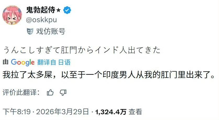 马斯克刚刚给X平台整了个好活儿:跨语言推荐。 之前,在X上,各语言的内容是割裂的,比如你的系统语言选择日语,那给你推荐的就都是日语内容,不会给你推荐阿拉伯语、西班牙语等其他语言的内容,日语系统用户发的热门内容也不会被推给其他语言的用户。 当然,你可以自己主动搜其他语言的内容,也可以修改自己的语言设置去看其他语言内容,只是说算法不会给你推荐。 英语内容有一点特权,但也不多。 下图是一个日本人用日语骂印度人,成了日语热门内容。本来,按老算法,这个内容只会推给日语用户。 但是改成跨语言推荐后,这个内容也被推荐给了其他语言用户,加上X的自带翻译功能,被印度人看到了。 于是就出现了这个印度人集体骂日本人的场景。