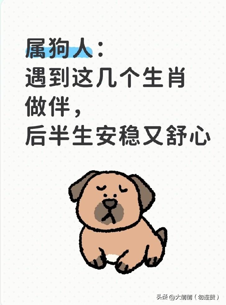 属狗人: 遇到这几个生肖做伴, 后半生安稳又舒心 属狗的人心地实在,重情重义,对家人朋友都掏心掏肺,做事踏实靠谱,走到哪都让人放心。 今年整体状态平和安稳,心情舒畅少烦心事,做事顺顺利利,身边也常有愿意帮衬的人,日子越过越省心。 财运上,方面稳中向好,靠自己努力踏实赚钱,收入稳步提升,手头宽裕,生活不愁。 感情上,属狗人专一又顾家,和属兔、属马、属虎、属鸡、属猴的人格外合得来。彼此体谅、互相扶持,相处轻松舒服,容易拥有长久安稳的好姻缘,夫妻同心,烟火气里全是幸福感。 愿属狗的你一生被温柔以待,平安顺遂,喜乐常伴,阖家安康。