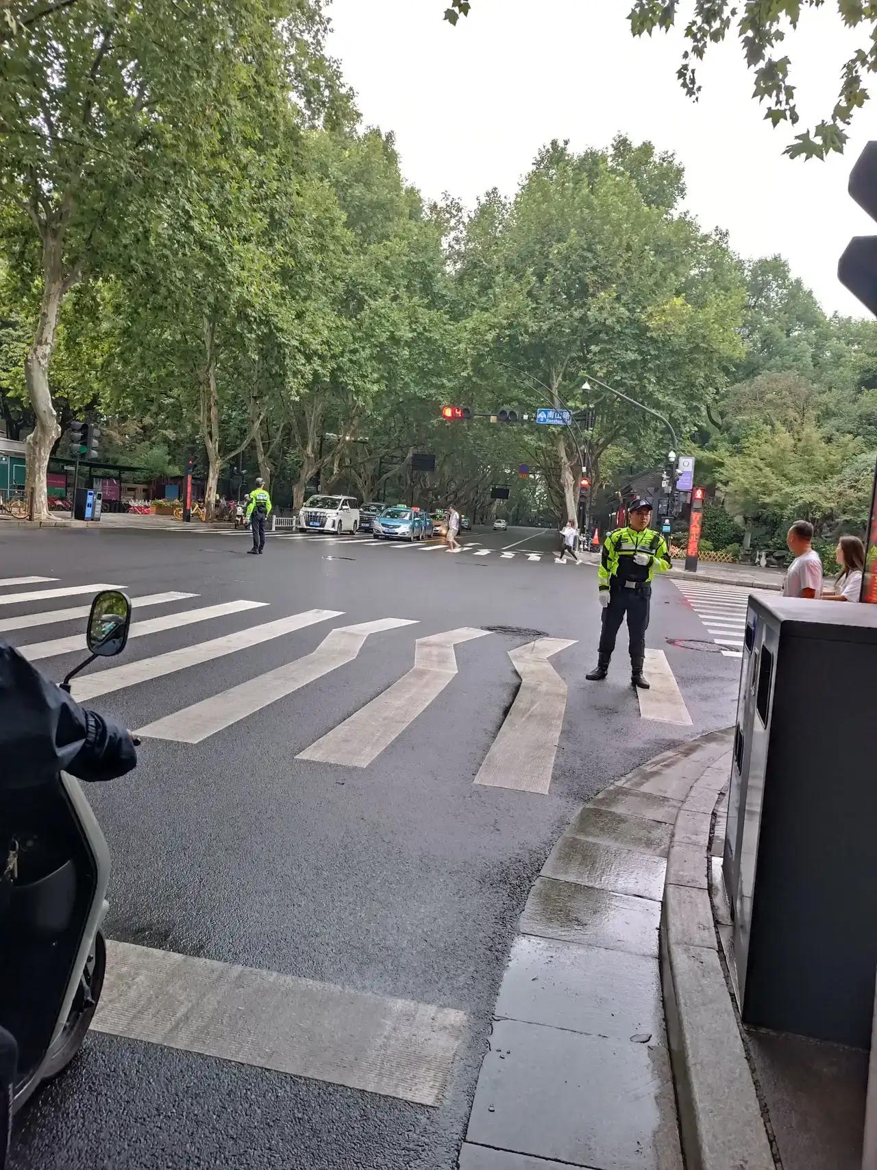 杭州的交警太有人情味了,今天杭州下雨特别是在早高峰期间道路有点堵塞,而马路中间的交警同志指挥左转秒变“五”车道也太神奇,瞬间解决了马路中心区的堵塞的问题。 我感觉这个交警同志才是真正的交响乐团的总指挥,在条件允许的情况下合理利用资源,不但有智慧而且有能力,指挥交通有方法。