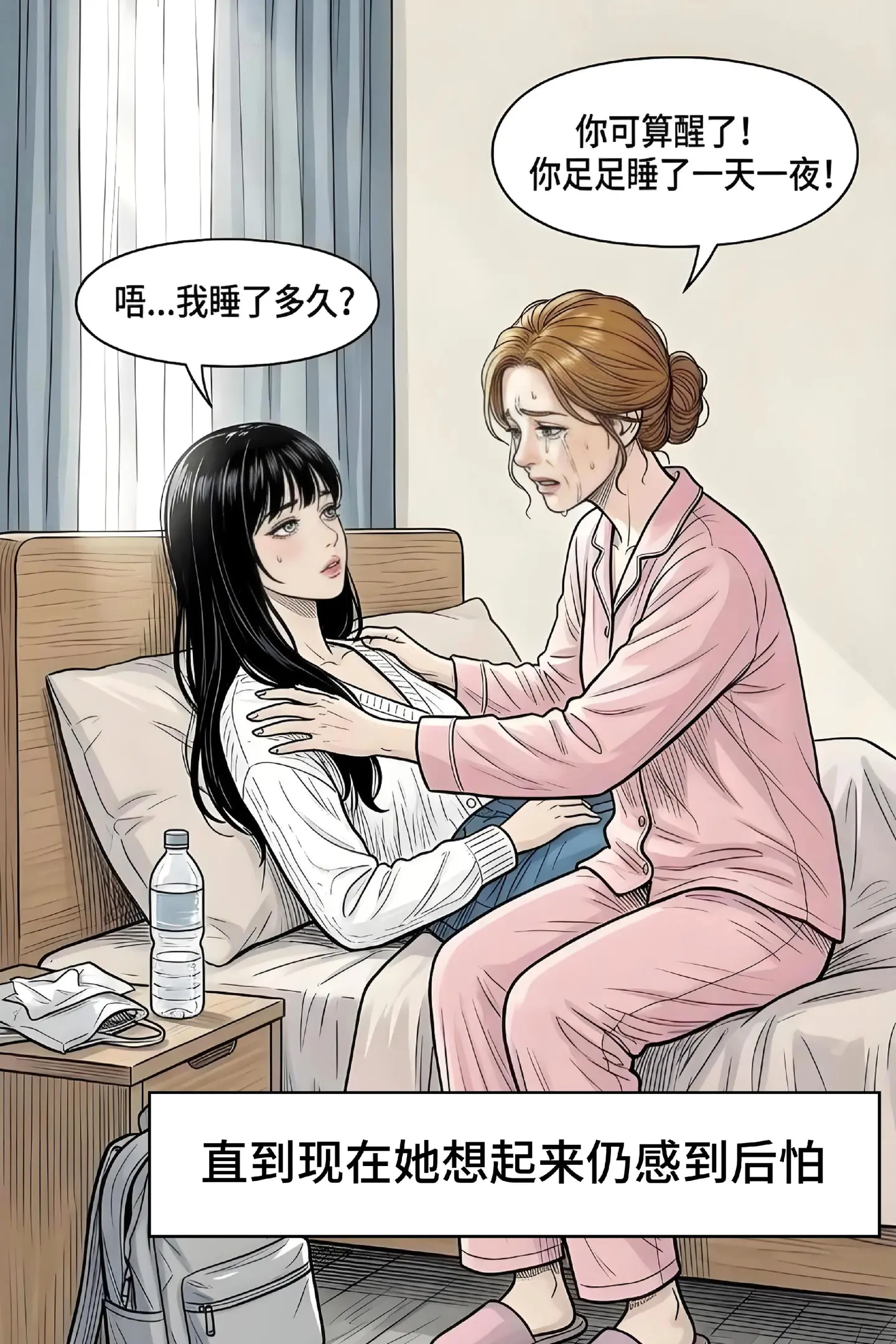 "妈妈再给你盖一次被子,像刚出生时一样."