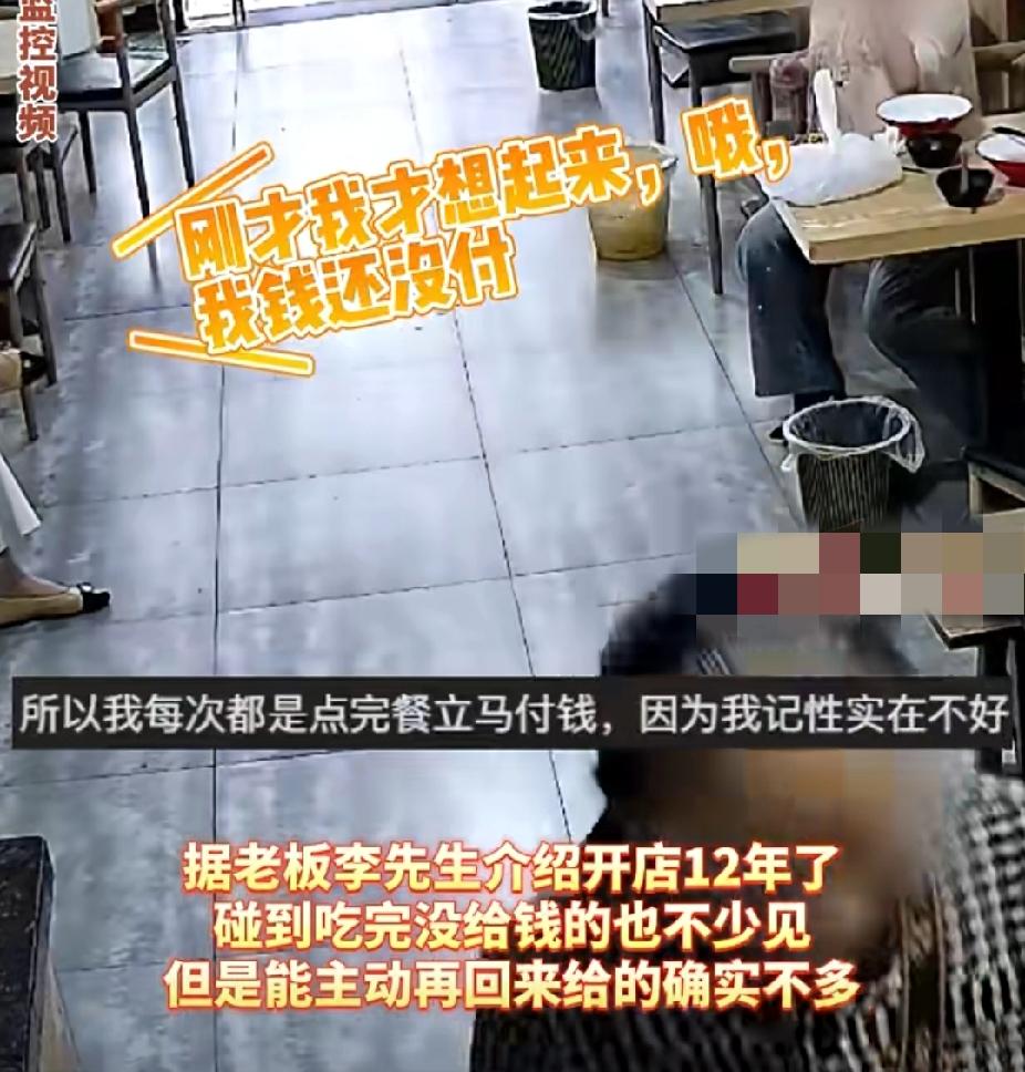 有格局!奶奶带孙女吃馄饨没付钱就走,老板:“卡我社恐bug!知道我社恐不敢追出去要!”半小时后奶奶前来付款! (信息来源:AHTV第一时间) 3月29日,安徽巢湖一家馄饨店,一奶奶带着小孙女点了一份馄饨。可是吃完后没付钱就离开了。老板在后厨全程看得目瞪口呆:“这奶奶是不是知道我社恐,店里有人的情况下我根本不敢追出去要钱!” 老板感觉非常苦恼,因为自己前两天刚刚发了个视频说自己社恐,这种情况下根本不敢追出去要钱!而这位吃完转身就走的奶奶,似乎就是专门来卡老板bug的,一想起来老板就觉得气不打一处来,但又不敢声张,只能自己气自己!在追出去要钱和气之间,选择了生窝囊气! 半小时后,老板依旧在生窝囊气,奶奶突然拿着手机着急忙慌的一边跑进来一边道歉:“哎呀老板真不好意思,我才想起来我刚才没付钱就走了,15块钱对吧?” 原来奶奶只是忘了,并不是故意不付钱的,更不是故意卡老板的社恐Bug! 老板愣了,看了看奶奶,又想了想自己刚才不断的埋怨,瞬间心里有些愧疚。自嘲道:“怪不得我这店开了这么久还这么小,这么大点事我都斤斤计较,该自我反省一下了!” 哈哈,老板有这自我反省的自觉,想必以后生意一定会越做越大的! 格局