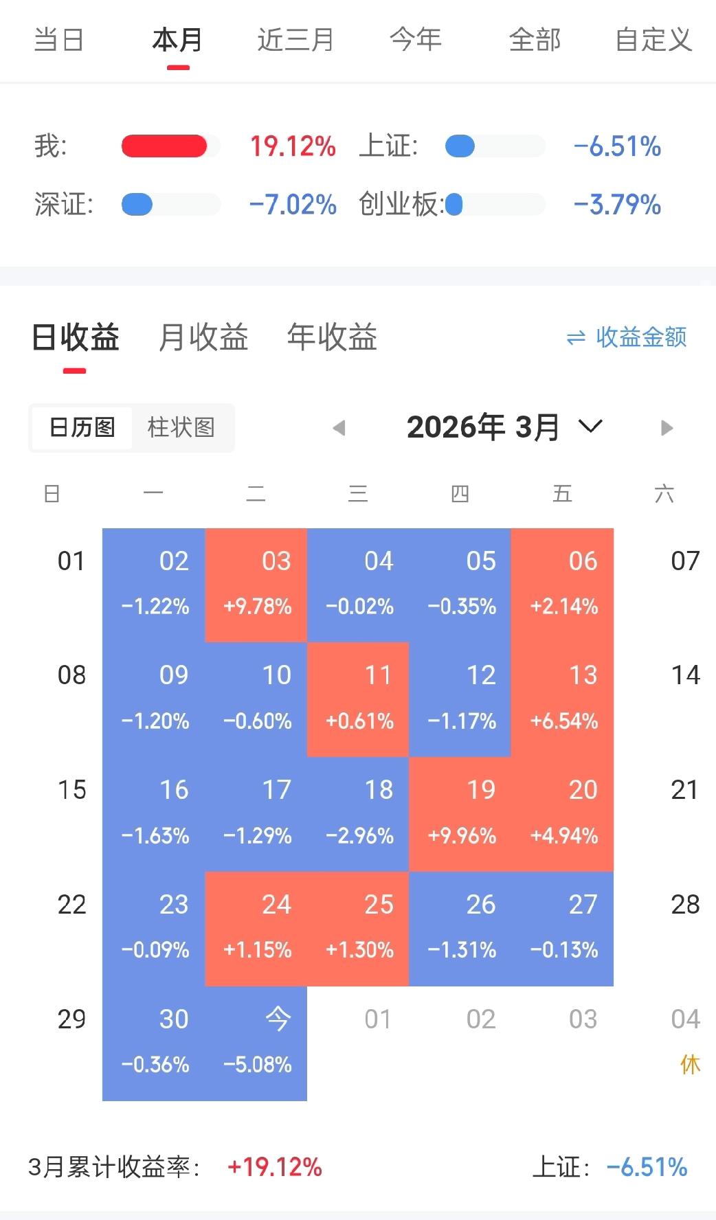 今天股票亏惨了!昨天3月份账户盈利还是6700多,今天就变成5000元了! 目前手里两只股票全是绿的,而且跌的还特别狠,一个跌四个多点,一个跌六个多点,真是伤心死了! 这一个月的操作就今天最糟心了,这一个月买的所有股票,就这两只就让恶心了!卖吧,亏的太多,不卖吧,看着糟心! 前几天还想着3月份能盈利1万元我就知足了,没想到最后被这两只垃圾股给拖了后腿,这个月只挣了5000元。 真是理想很丰满,现实很骨感,我恨死这两只股票了! 不说了,祝大家4月份都心想事成,美梦成真!