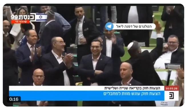 对恐怖分子处以死刑的议案激辩了半年,3月30日以62:48的表决结果获得以色列议会终审通过,终于成为法律。内塔尼亚胡投了赞成票。 毫不例外地,欧洲多个国家继续跳出来反对,理由大家应该都耳熟能详,无非是死刑侵犯生命权、人权之类,叭拉叭拉。从这项议案开始推进起,一读二读三读,高举人道主义旗帜的欧盟就没停止过批评。 对于以色列来说,这是一个具有巨大历史意义的转折。以色列其实是有死刑的,只不过因为长期以来一直和欧美左派对齐,过度讲人权、人道,所以死刑在实际中并没有实行,结果害了自己。 10.7之后,以前对死刑尚有疑虑的很多以色列人再也不相信对恐怖分子也要讲生命权 讲人权。人们认识到,必须要改变思维模式。根据数据,以色列释放的所有哈马斯分子中80%重操旧业。 因为没有死刑,而且在监狱里对恐怖分子好吃好喝养着,病了还给做手术(比如治好哈马斯领导人辛瓦尔的脑癌),这让周边的恐怖分子为所欲为,无所顾忌;因为没有死刑,被关押的恐怖分子还可以在人质交换时被换回去,这又从另一方面助长了对以色列人的绑架行为;而狂热的信仰,又让他们变得既极端又愚蠢,根本无法用正常人类的方式和他讲道理,也无法用文明方式改造他。 本议案的强力推进者,国家安全部长本·格维尔说:“...每个恐怖分子都应该知道这项法律的威慑力。这会让他们在再次犯下10月7日那样的罪行之前思考一千次。” 格维尔的说法,应该代表了很多痛定思痛的以色列人的想法:如果当时以色列执行死刑,辛瓦尔和那么多犯下杀人罪的恐怖分子早就死了...... 今天我看到以色列通过《恐怖分子死刑法案》的新闻下面,很多反美反以的正义网友义愤填膺。我高度怀疑,这批人和高喊“虽远必诛”的是同一批人。讽刺不讽刺? 我对以色列有个建议,如果欧盟再叨叨着不让以色列对杀害自己国民的恐怖分子实行死刑,就不用再和这帮左得够呛的圣母婊讲道理了,直接回一句话:F**k you!一帮软蛋。