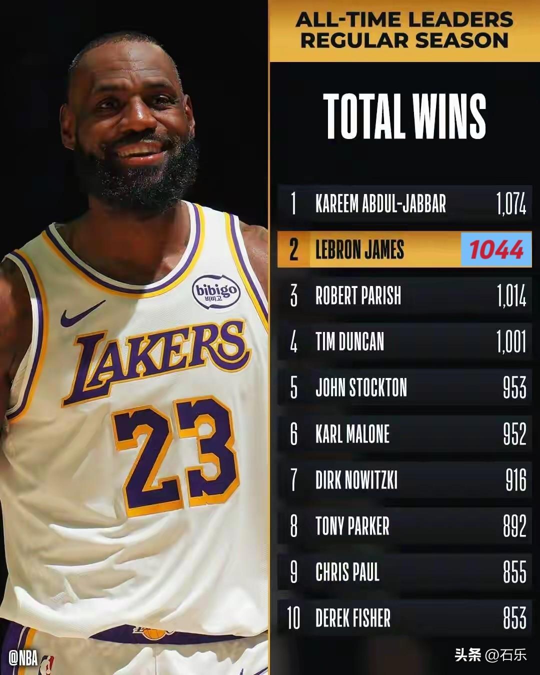 这项NBA历史上最难打破纪录之一的数据又要被詹姆斯完成了 战胜奇才,詹姆斯不但拿到三双的数据,成为了NBA历史年龄最大拿到三双的人,还达成了另一项荣誉更加有意义的数据! 本场比赛获胜后,詹姆斯职业生涯总胜场数追平了贾巴尔,以1228场暂时并列历史第一,只要詹姆斯再拿到一场胜利就将独享历史第一,相信这个赛季就能完成。 要知道,很多球员整个职业生涯都打不到1000场比赛,就更别提能拿到1000场以上的胜利了。 詹姆斯此前已经拿到季后赛184场胜利,这个数据同样高居历史第一,但他还需要完成另一项数据对贾巴尔的超越,那就是常规赛胜场数,目前,詹姆斯以1044落后贾巴尔30场位居历史第二位。 只要詹姆斯下个赛季不退役,相信超越贾巴尔来到历史第一只是时间问题,届时,詹姆斯将会独揽常规赛,季后赛和总胜场数三项历史第一的荣誉,相信这个纪录一定会成为NBA历史最难打破的纪录之一!