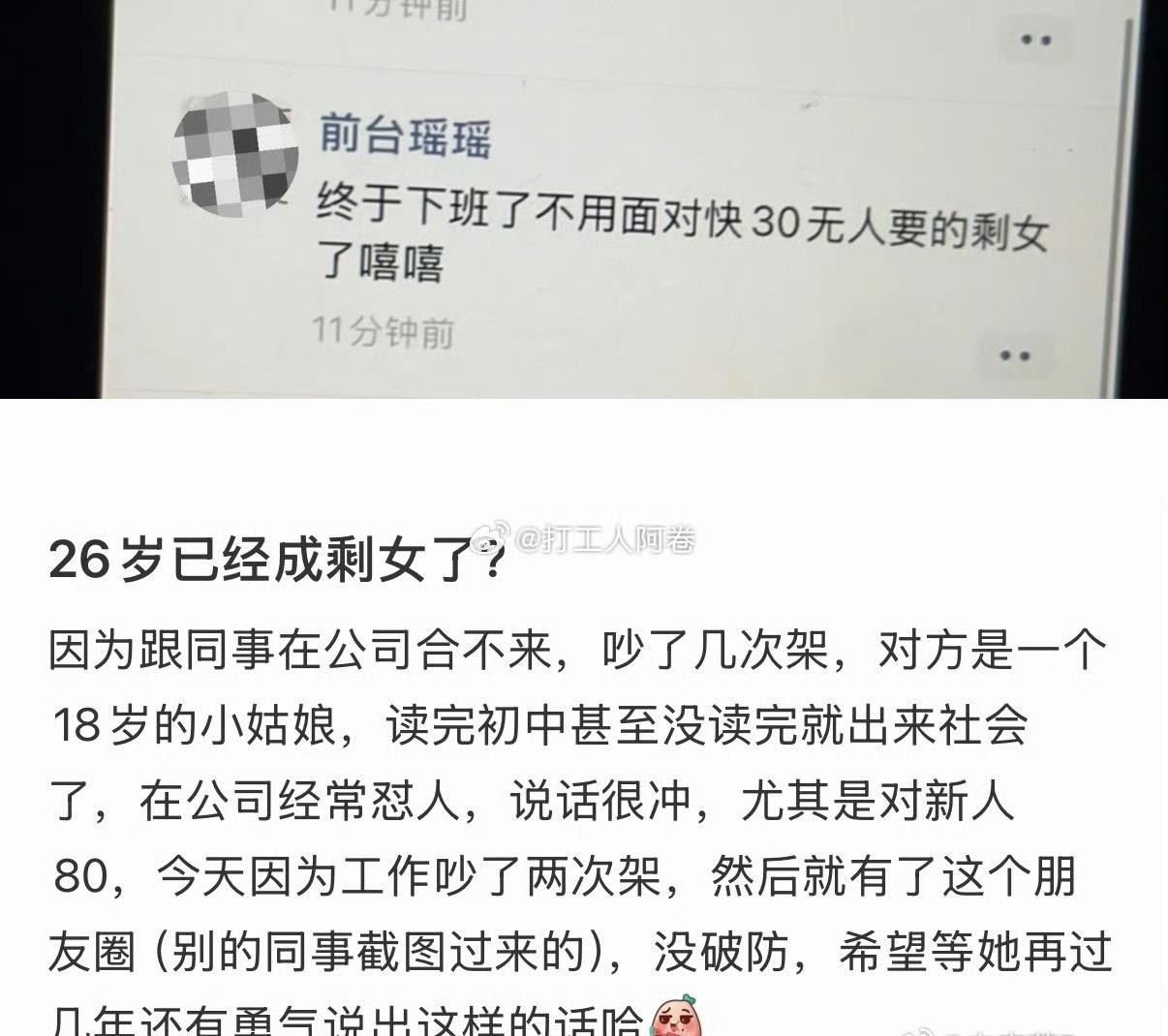 18岁小姑娘说26岁同事是剩女