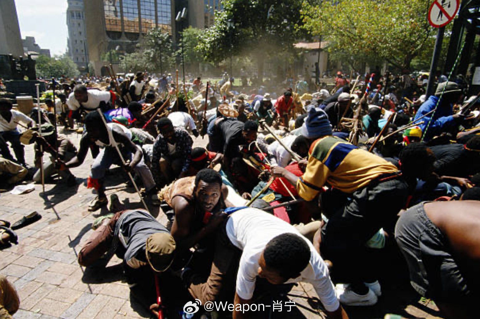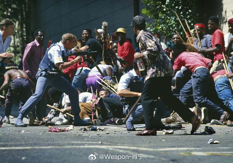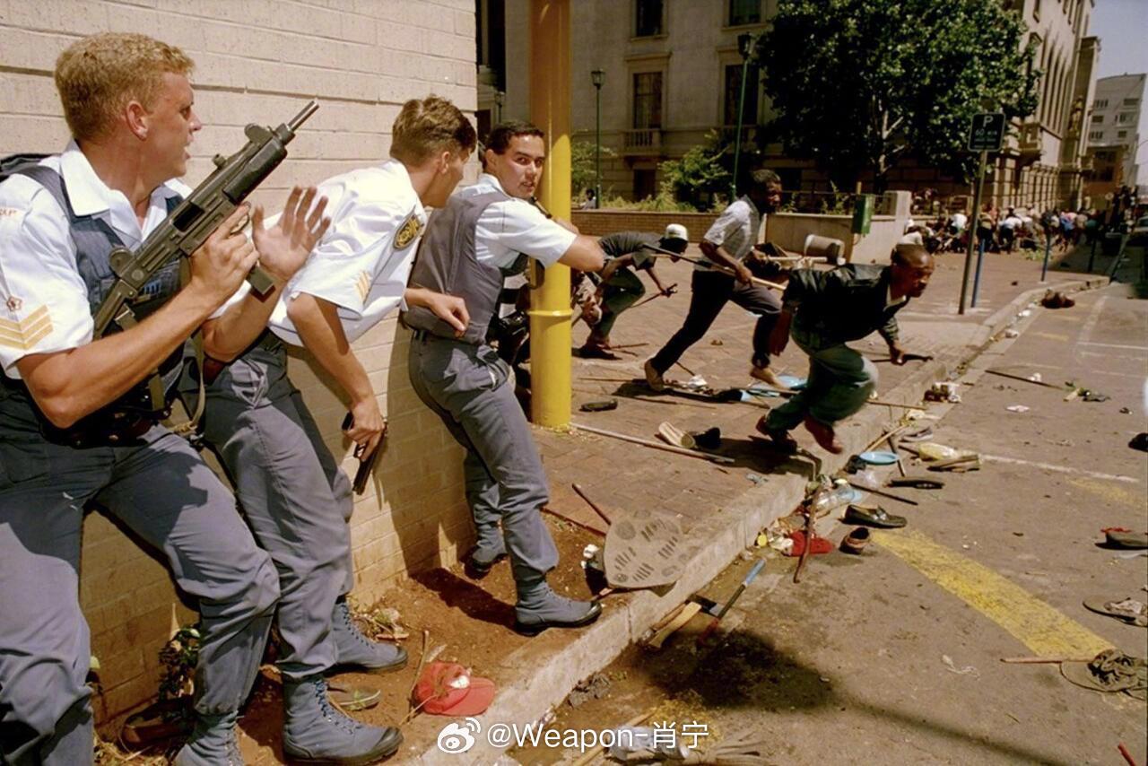 照片中的历史 1994年3月28日,南非,因卡塔自由党(IFP)抗议者逃离现场,南非警方准备应对零星枪击事件,这起事件后来被称为“壳牌大厦大屠杀”。位于南非约翰内斯堡普莱因街 51 号的壳牌大厦(不要与非国大后来迁址的卢图利大厦混淆)是非国大在被解除禁令后至 1997 年的总部。1994 年 3 月 28 日,约 2 万名因卡塔自由党(IFP) 的支持者游行至壳牌大厦,抗议IFP 打算抵制的 1994 年大选。非国大保安人员开枪,造成19人死亡。当时,保安人员声称因卡塔自由党的支持者正在冲击大楼,或者他们收到了有关此计划的线报。努根特调查委员会驳斥了这种解释。委员会的结论是,非国大警卫的枪击行为是不合理的。这一事件反映了当时非国大和因卡塔自由党之间日益紧张的关系。这种紧张关系始于20世纪80年代的夸祖鲁-纳塔尔省,并在90年代蔓延到其他省份。因卡塔自由党声称非国大意图削弱传统权威和祖鲁酋长的权力;而非国大则认为,随着种族隔离制度的最终瓦解,一场权力斗争即将爆发。1995年6月,非国大和时任总统纳尔逊·曼德拉承认,他下令保卫壳牌大厦,即使这意味着杀人。1995年,威廉·拉特向比勒陀利亚警察总部控告总统纳尔逊·曼德拉谋杀, 指控其在壳牌大厦大屠杀中犯有谋杀罪。后来南非真相与和解委员会赦免了11名与大屠杀有关的人员。